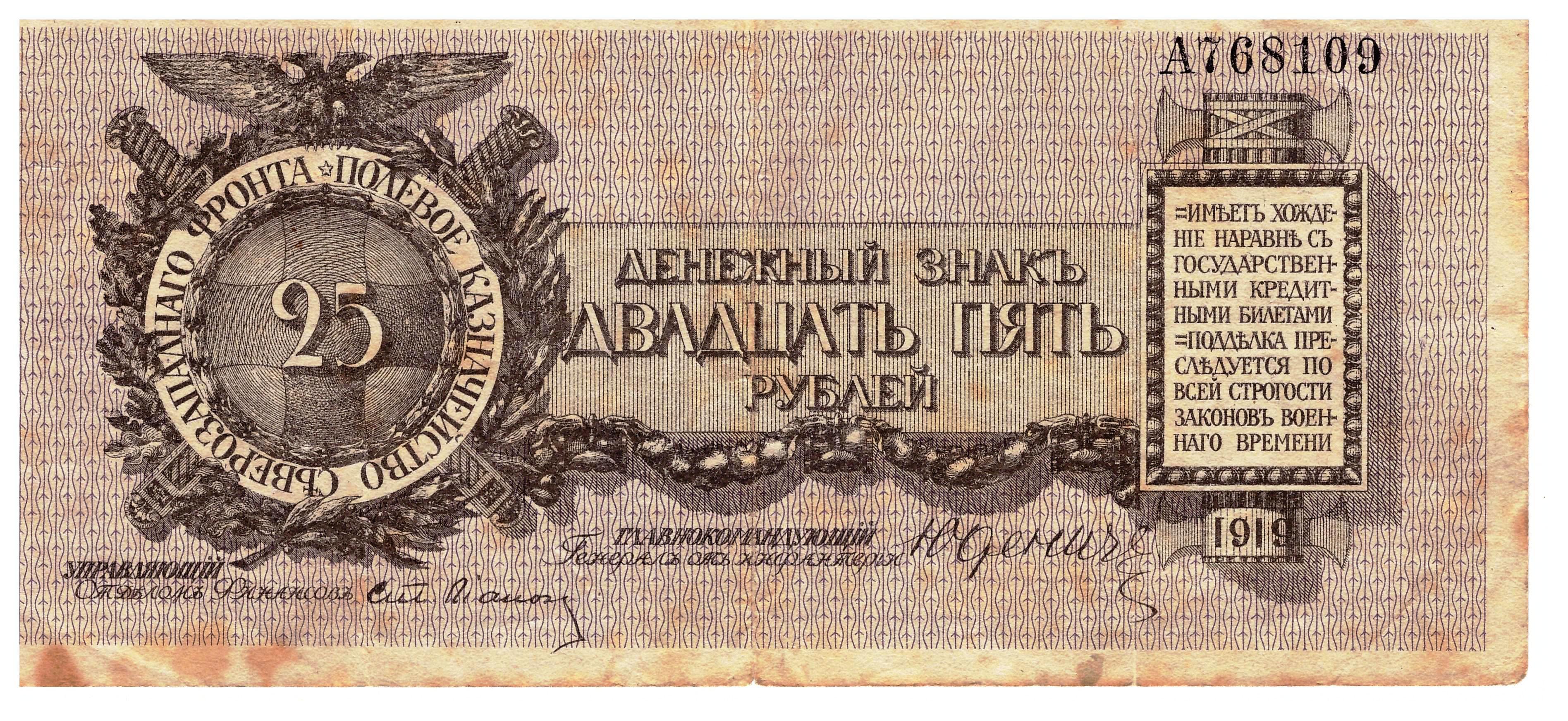 - 1919 25 rubli Front Północnozachodni awers