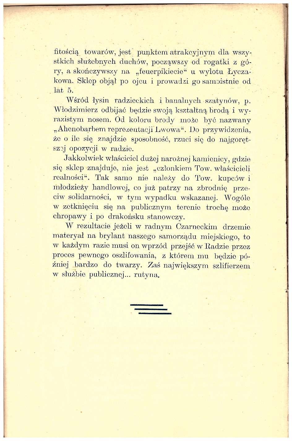 Zgodnie ze Wstępem, jest to ” … album 25 sylwetek nowych radnych, z liczby 50, wybranych na kadencję trzechletnią lwowskiej Reprezentacji na rok pański tysiąc dziewięćsetny drugi, trzeci i czwarty.”