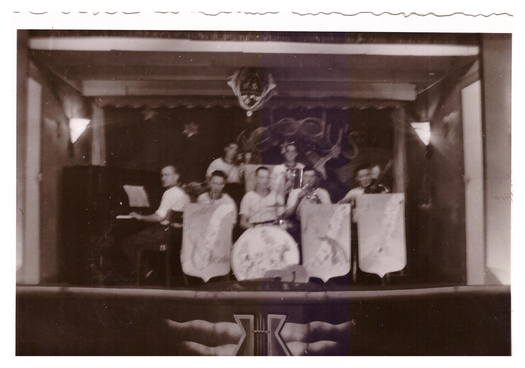 sylwester < 1939 r, od lewej Funek Stefan Legeżyński, Kazimierz Legeżyński, xx, Stanisław Legeżyński, Władysław Legeżyński, siedzi na środku Helena z Legeżyńskich Olszewska