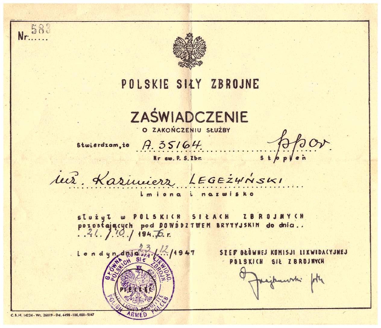 Kazimierz Legeżyński (ur. 29.10.1908 r we Lwowie – zm. 11.06.1971 r w RPA), syn Heleny i Kazimierza Legeżyńskich.  Brat Zygmunta, Józefa, Janiny, Adama, Władysława Legeżyńskich.