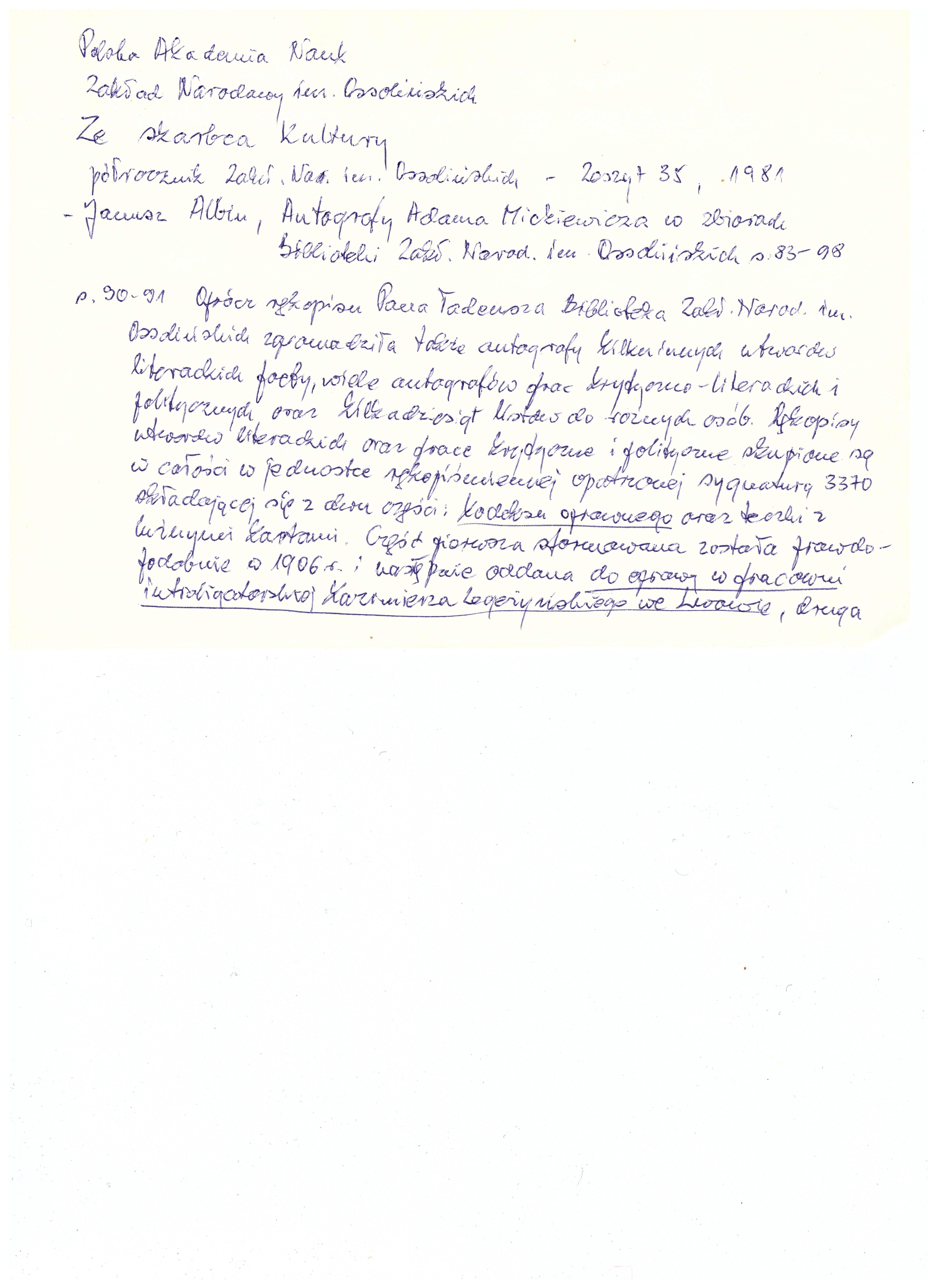 - Kazimierz Legeżyński notka o oprawie autografów Adama Mickiewicza