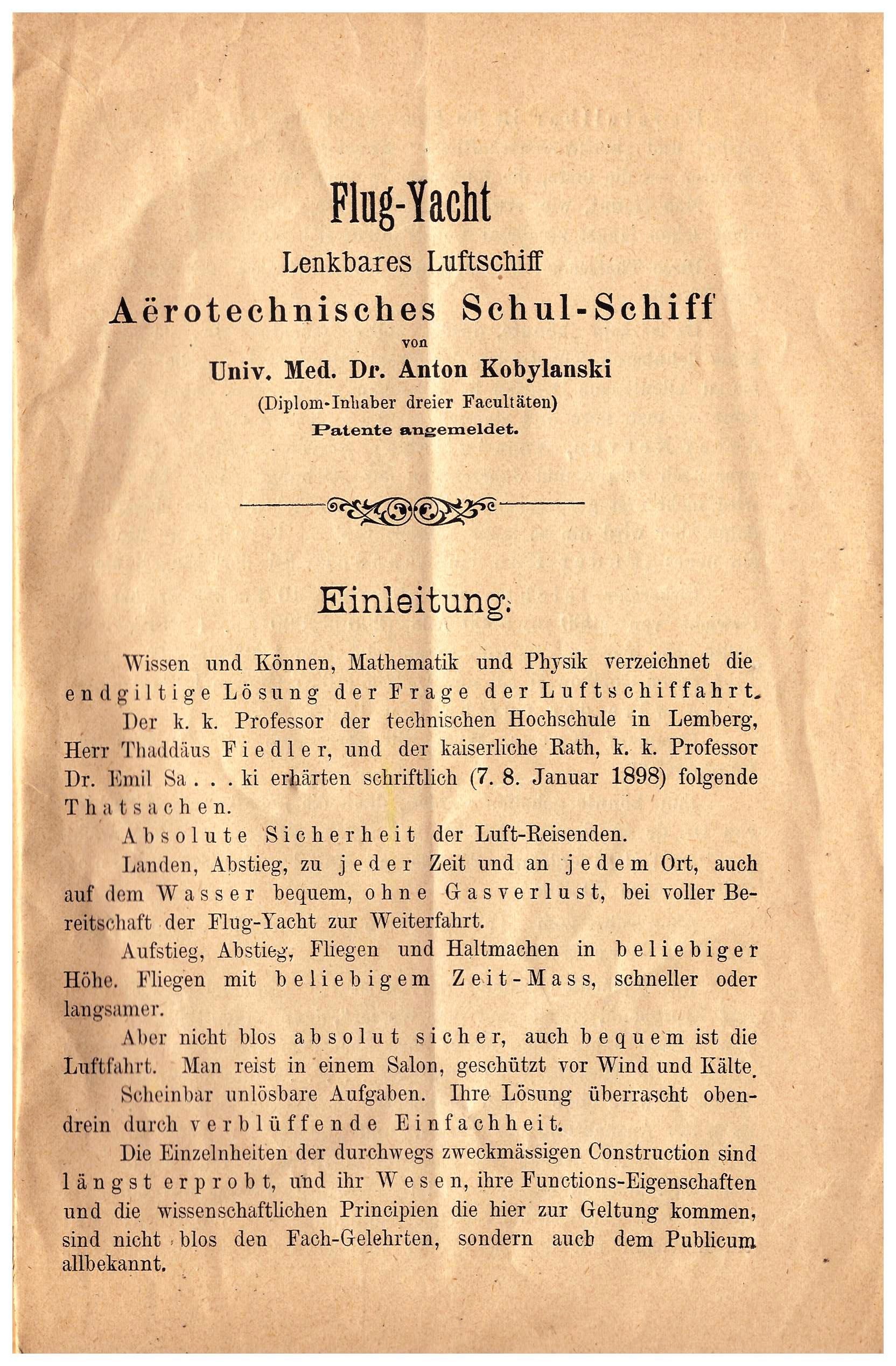 Antoni Kobylański, vel Anton Kobylanski, dr medycyny, autor patentu na FLUG-YACHT, ok. 1900 r