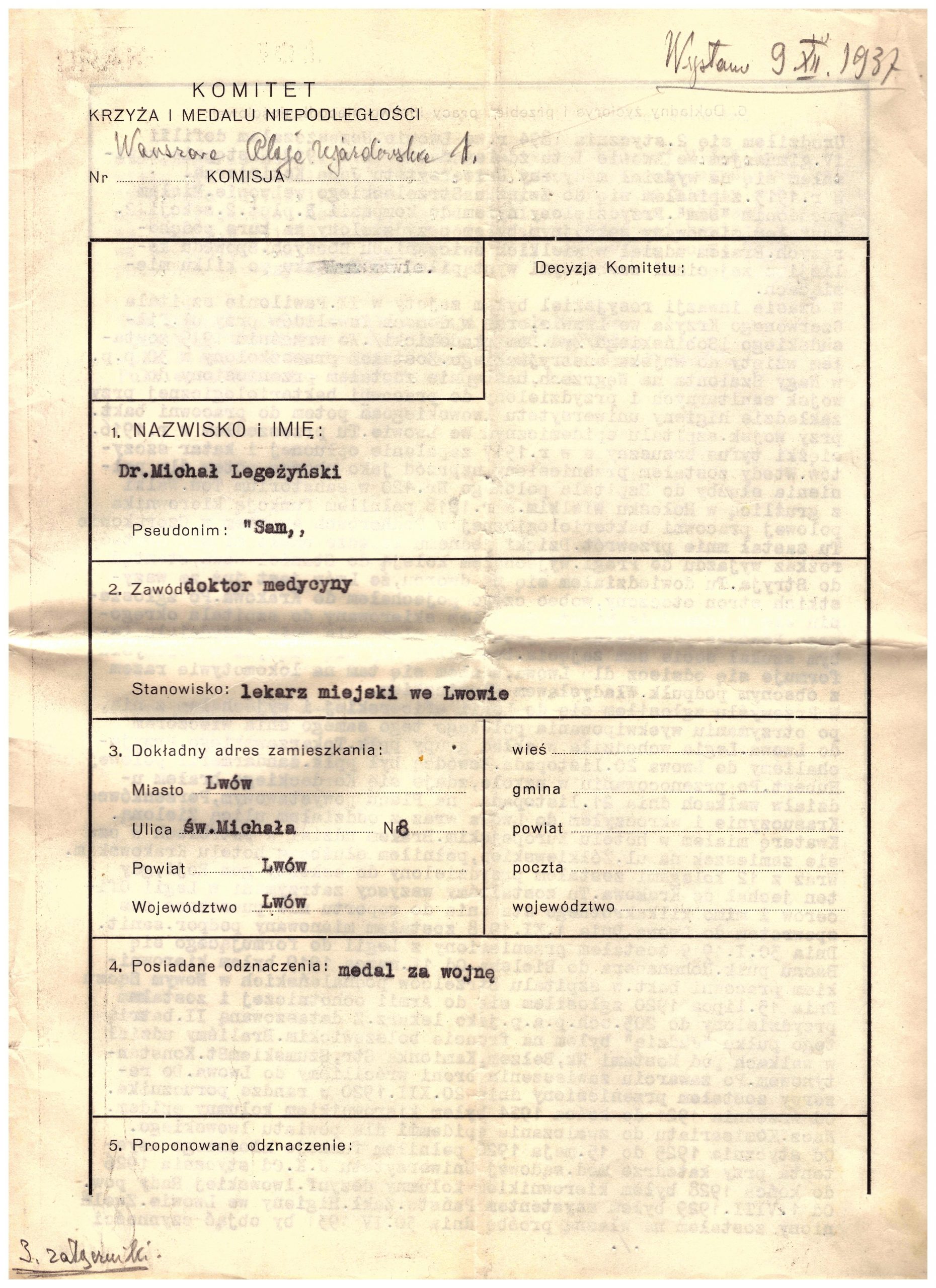 - Komitet Krzyża i medalu Niepodległości wniosek 1937 r 3