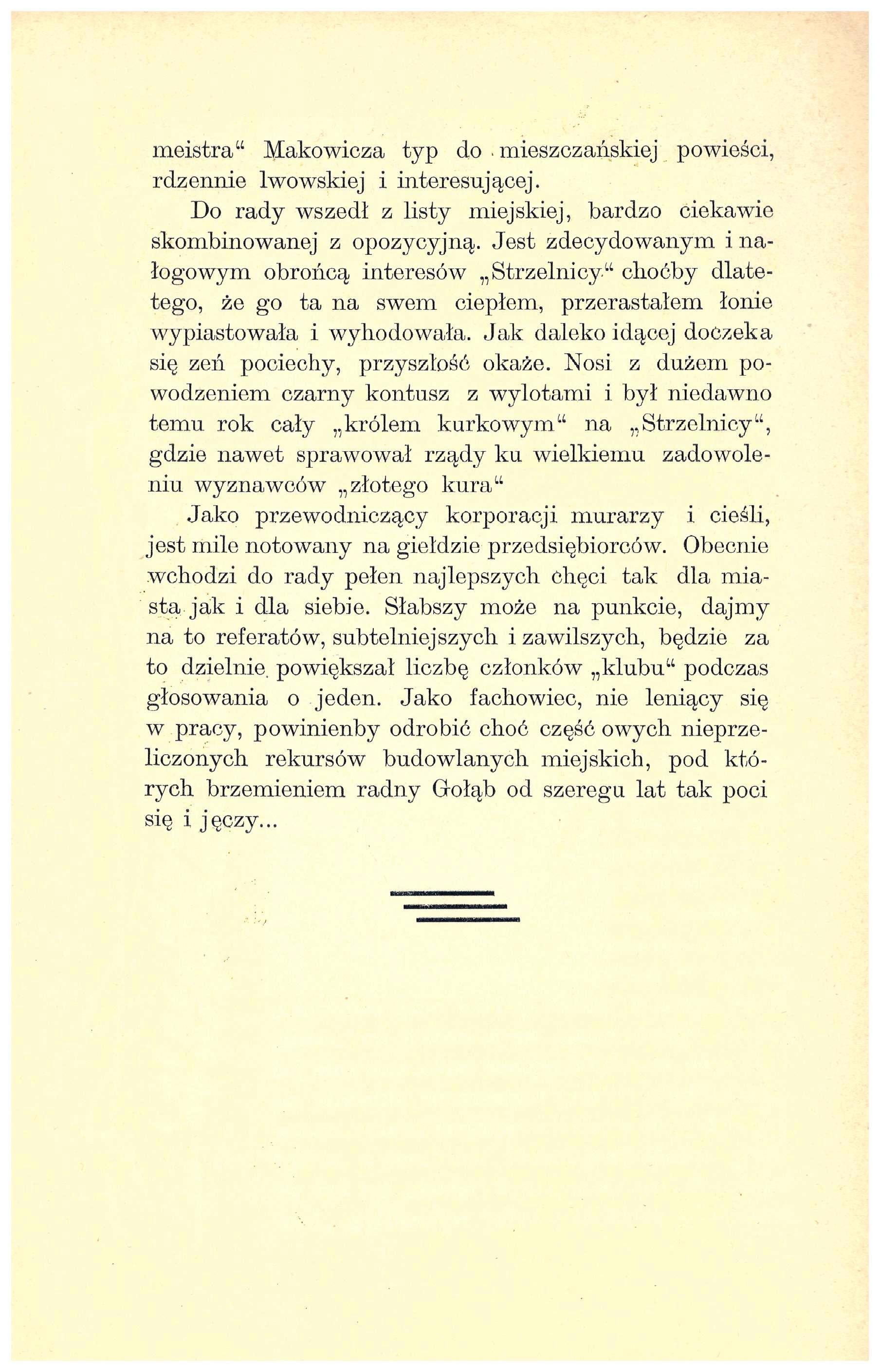 Zgodnie ze Wstępem, jest to ” … album 25 sylwetek nowych radnych, z liczby 50, wybranych na kadencję trzechletnią lwowskiej Reprezentacji na rok pański tysiąc dziewięćsetny drugi, trzeci i czwarty.”
