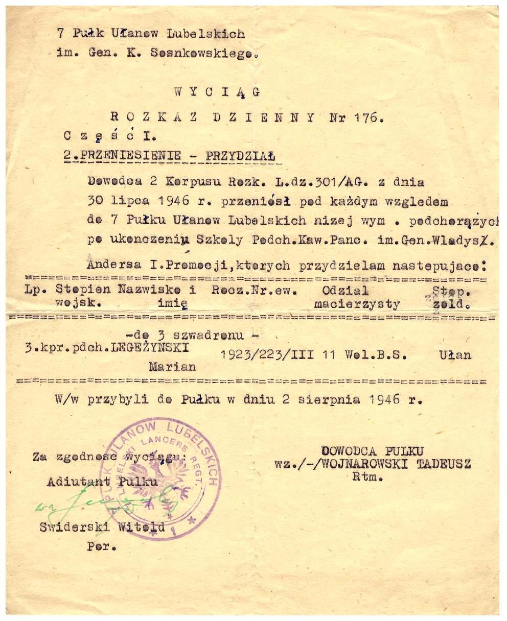 - 7-pulk-ulanow-lubelskich-1946-r-rozkaz-przeniesienia-marian-legezynski