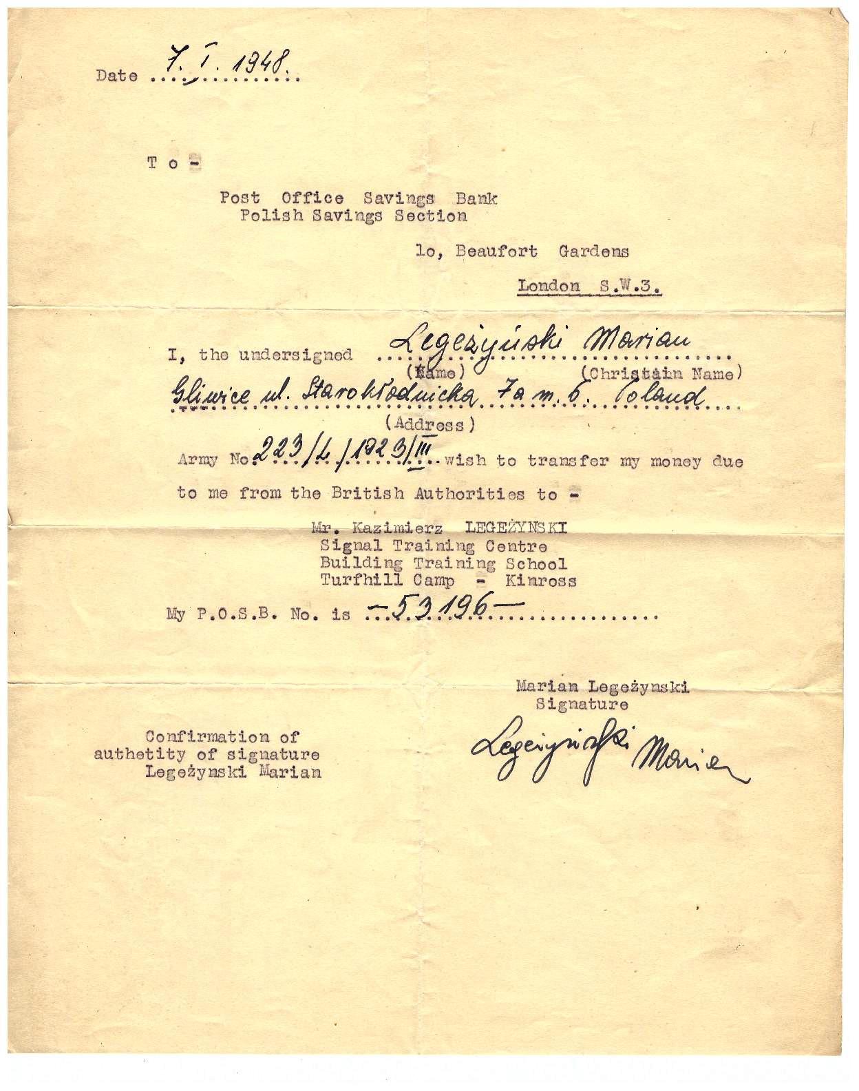 - marian-legezynski-1948-r-pismo-o-przeniesienie-pieniedzy-z-rachunku-bankowego-londyn-na-kazimierza-legezynskiego