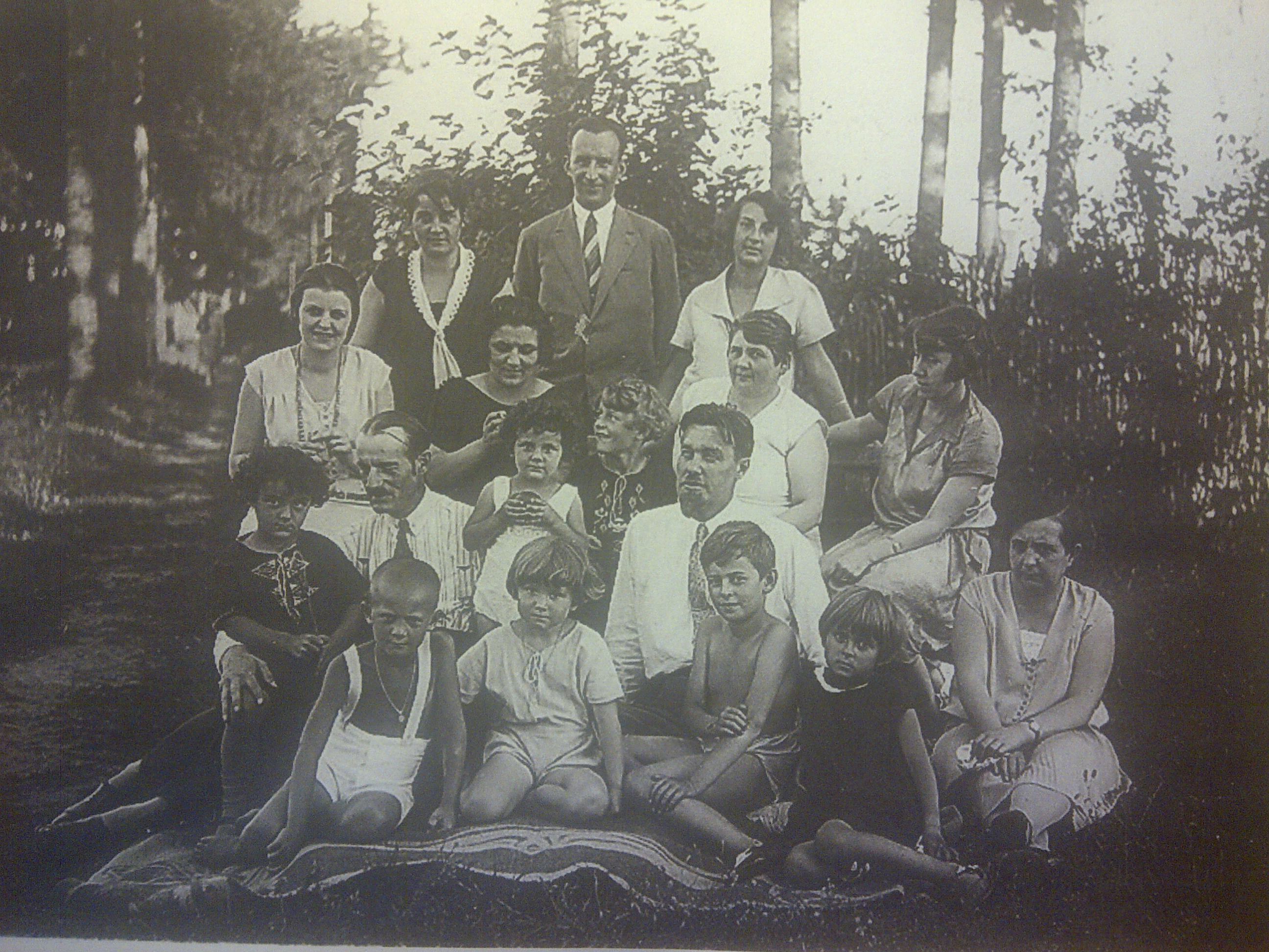 - zdjęcie zrobione zostało ok 1930 r w Brzuchowicach i przedstawia rodzinę Witołda Hartla, wójta w Brzuchowicach, inżyniera Fabryki Sklejki w Hołosku. Opis: Stoją, od lewej: – Niusia Kalkusowa, żona Franciszka Kalkusa wypychacza zwierząt, autora tego zdjęcia; – pan ?; – Janina z Legeżyńskich Szostakowska, żona Wacława Szostakowskiego. Siedzą, II-gi rząd od góry, od lewej: – Wisia Hartlówna, córka Witołda Hartla; – żona Romana Hartla; – Mićka Hartlowa z domu Salis, żona Witołda Hartla; – Jadwiga Legeżyńska, żona Józefa Legeżyńskiego. Siedzą, od lewej: – Roman Hartel z dwójka dzieci; – Witold Hartel. Dzieci siedzące na dole, od lewej: – Marian /Leszek/ Legeżyński; – Helena z Legeżyńskich Skarbińska; – Zbyszek Kalkus; – Krysia Kalkusówna.