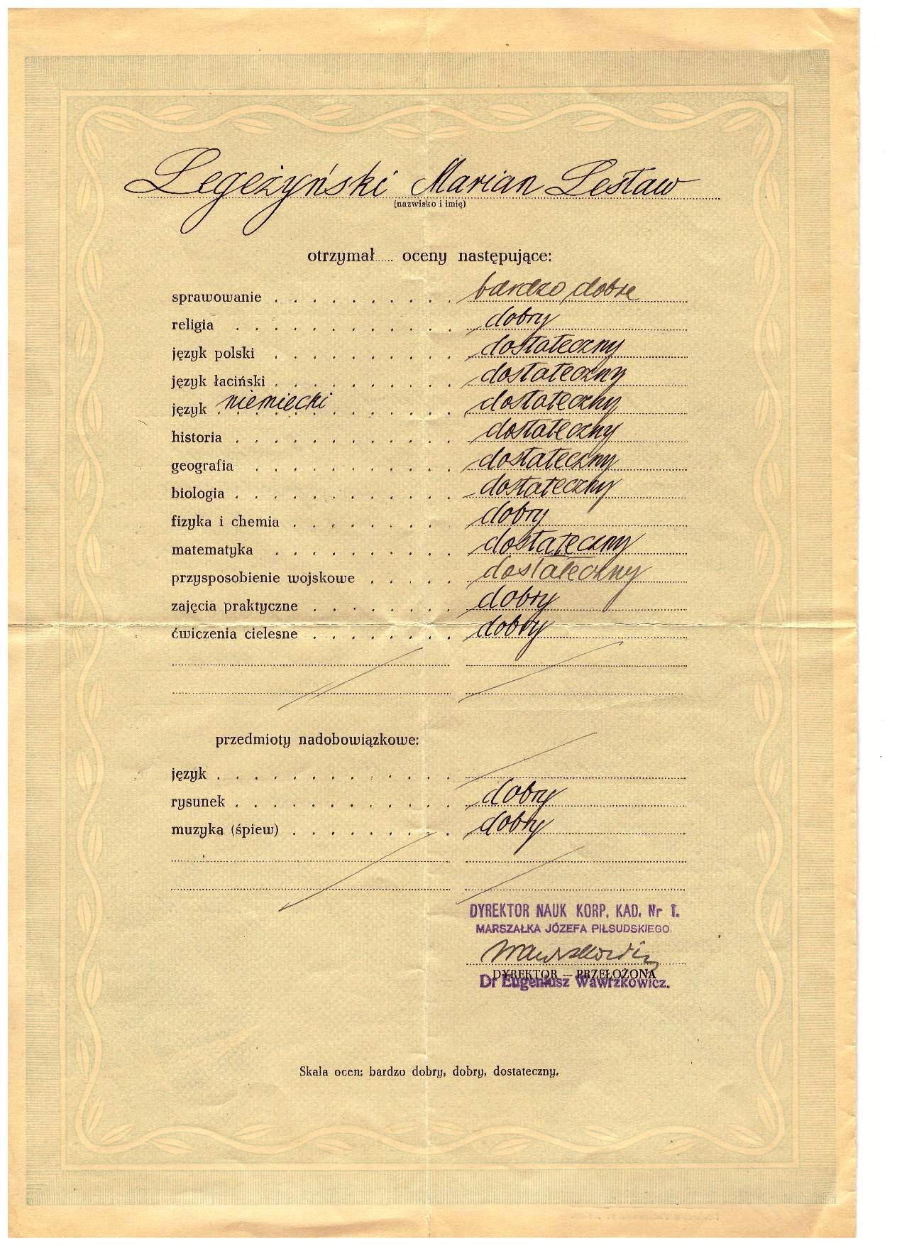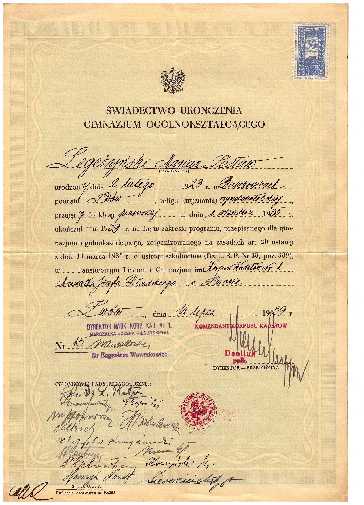 - swiadectwo-ukonczenia-gimnazjum-1939-r-lwow-korpus-kadetow-marian-legezynski