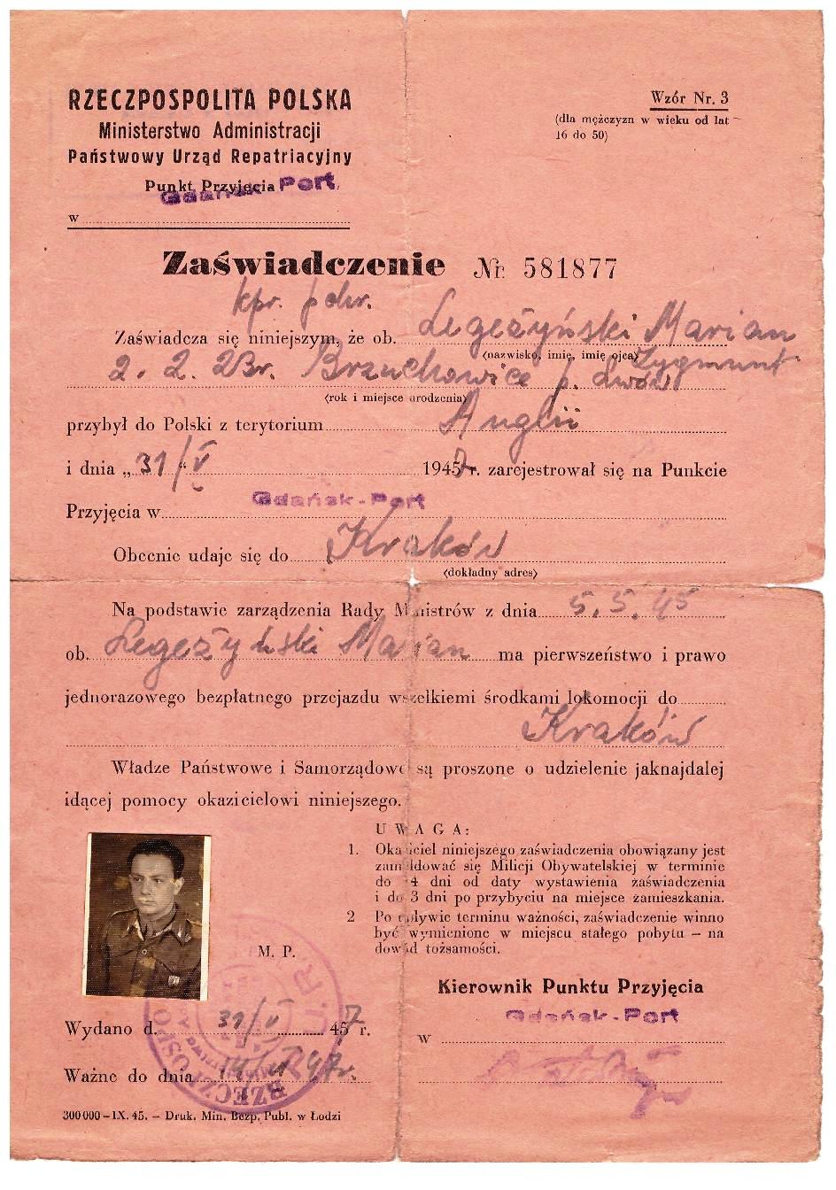 - urzad-repatriacji-gdansk-port-1947-r-zaswiadczenie-powrotu-marian-legezynski