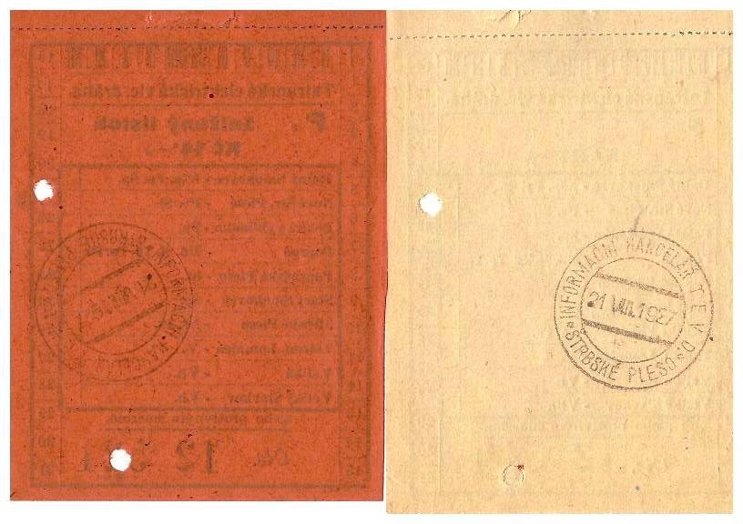- Polskie Towarzystwo Tatrzańskie bilety kolejki Strbskie Pleso 21 08 1927 r rewers Michał Legeżyński