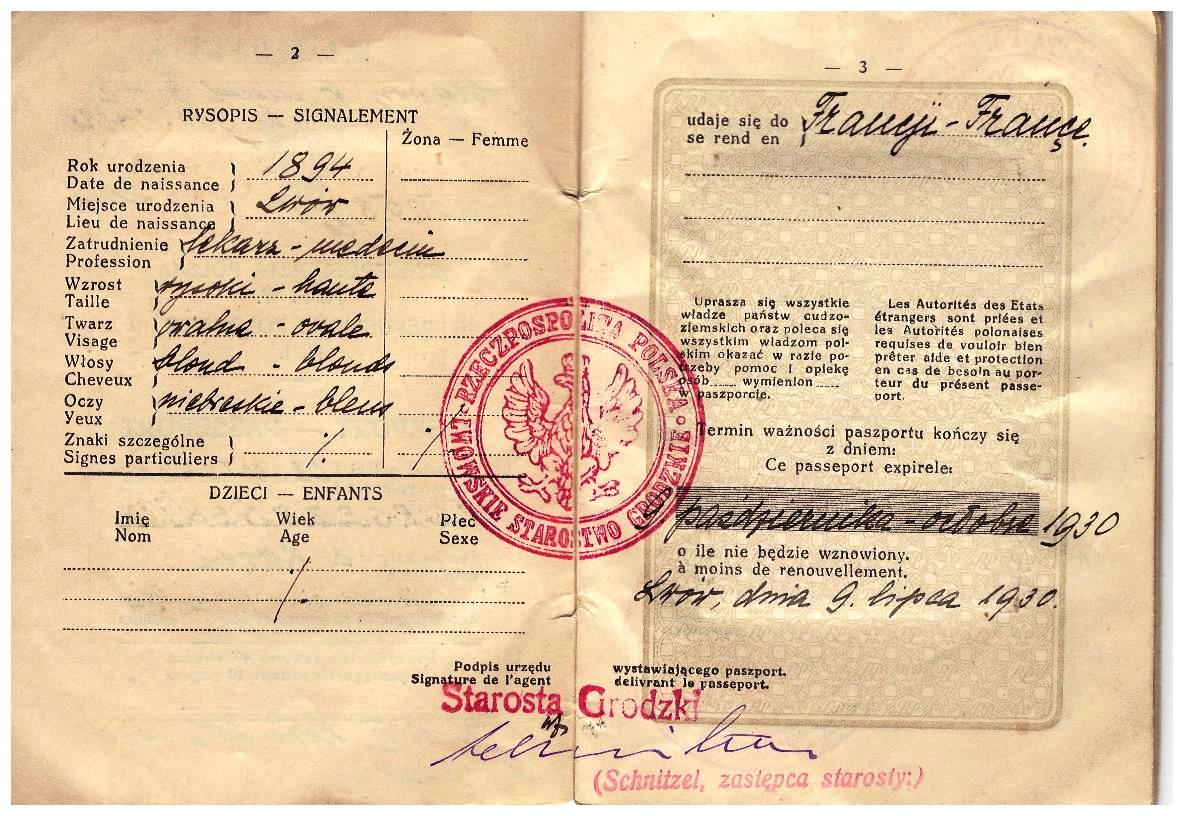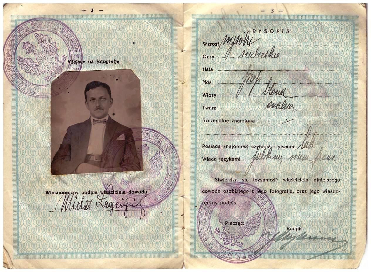 - dowód osobisty – paszport RP 1930 r str 2-3 Michał Legeżyński