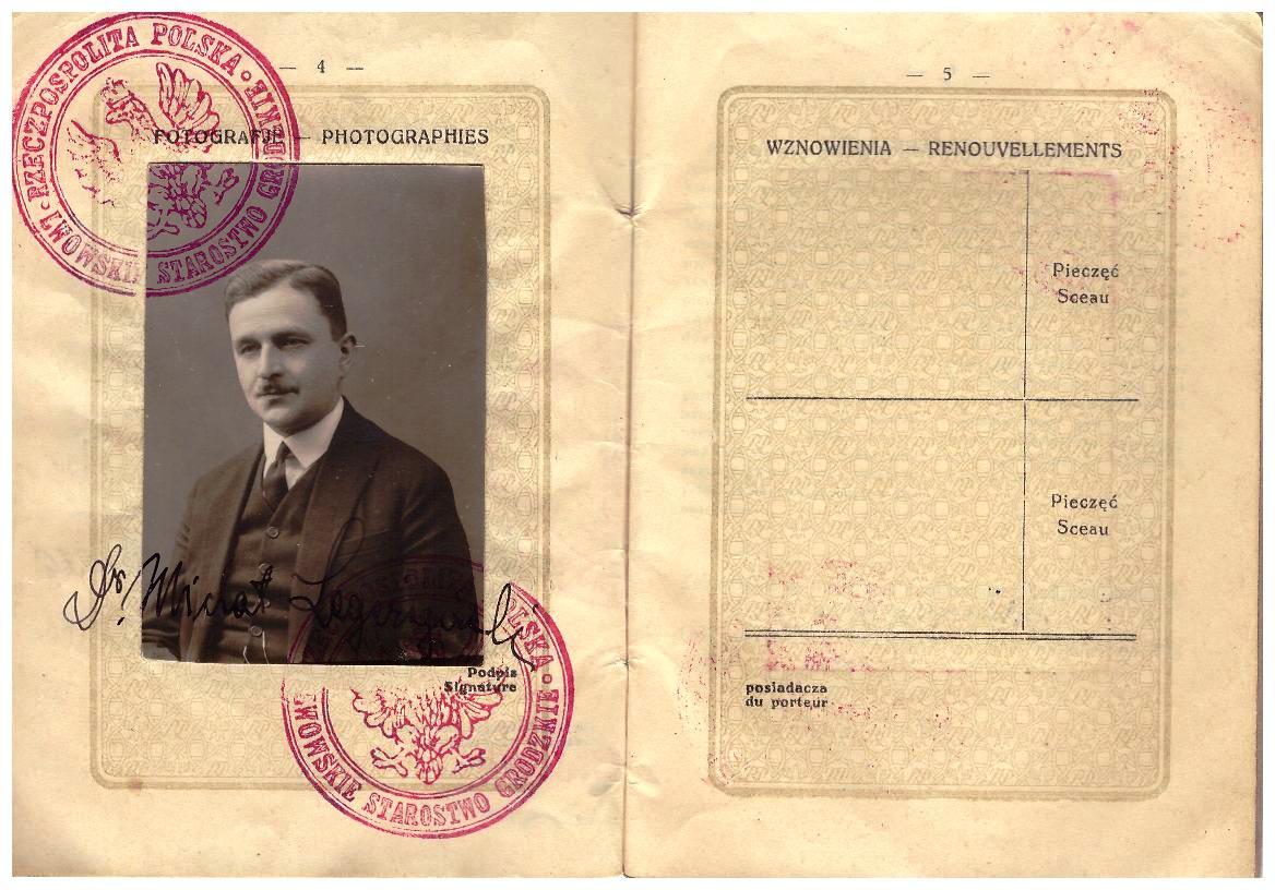 - dowód osobisty – paszport RP 1930 r str 4-5 Michał Legeżyński