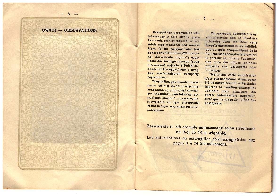 - dowód osobisty – paszport RP 1930 r str 6-7 Michał Legeżyński