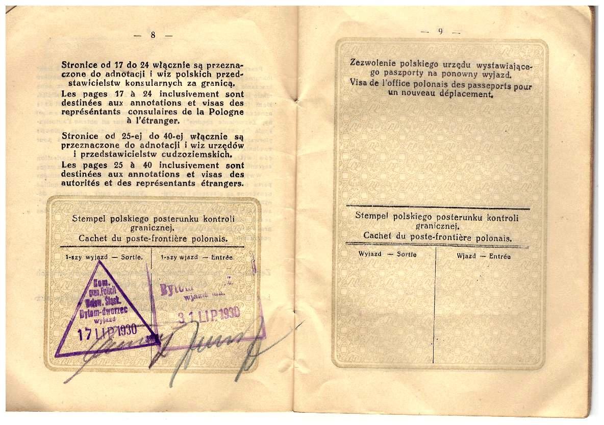 - dowód osobisty – paszport RP 1930 r str 8-9 Michał Legeżyński