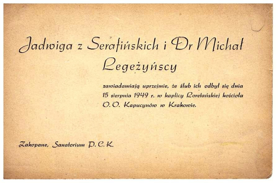 - zaproszenie ślubne1949 Jadwiga i Michał Legeżyńscy