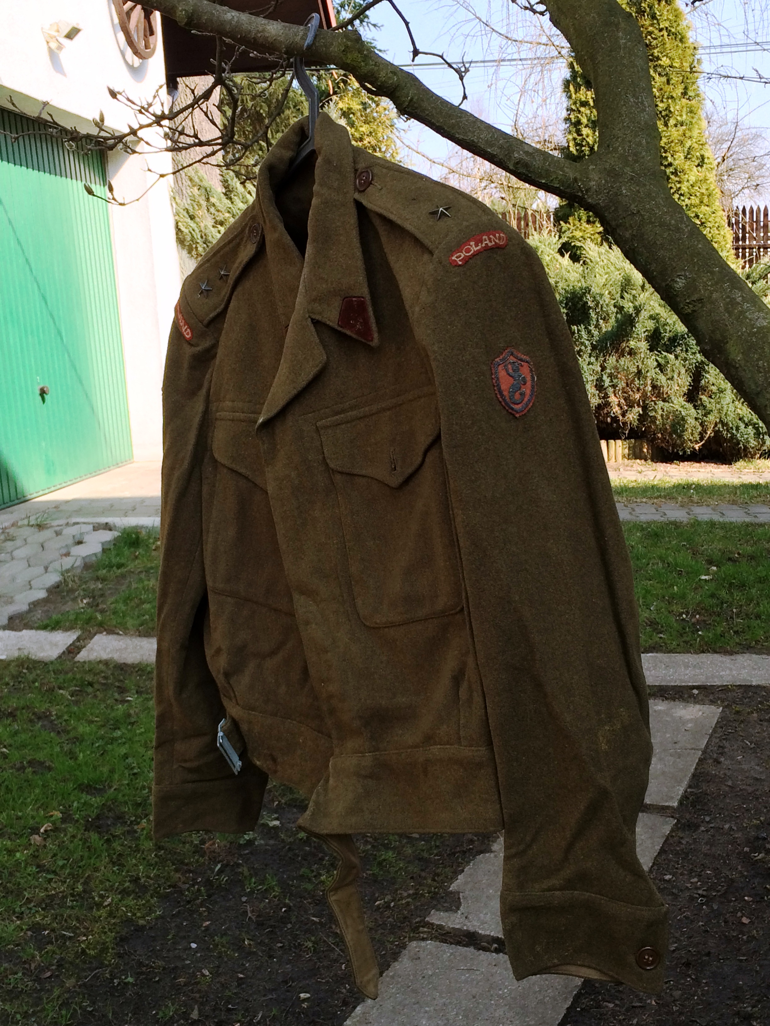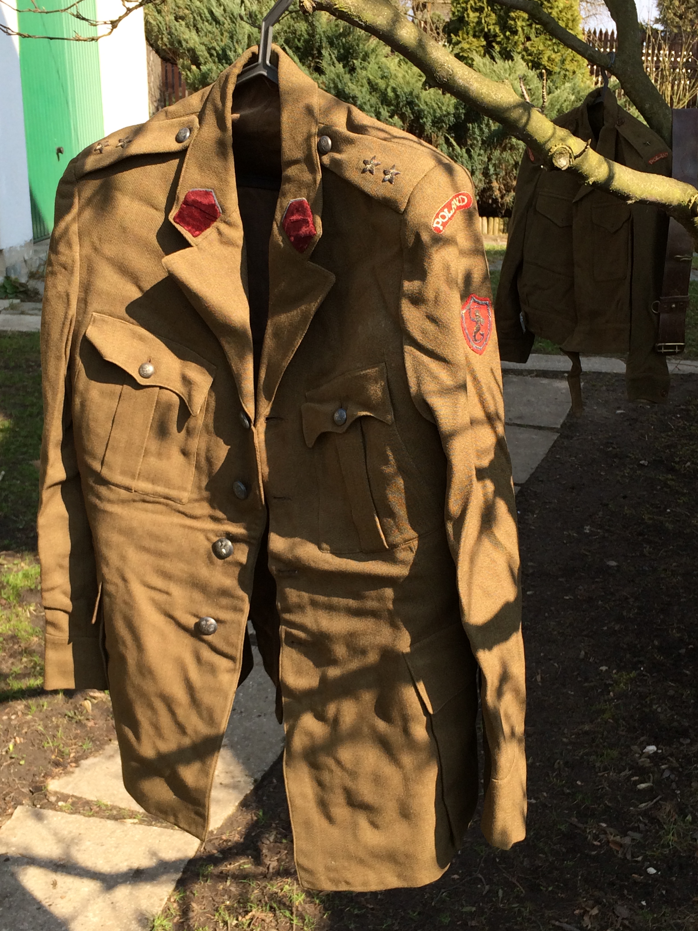 - trzy typy kurtki mundurowej, z naszywkami POLAND, gwiazdkami oficerskimi, emblematami jednostki wojskowej i służby medycznej, guziki z orzełkiem