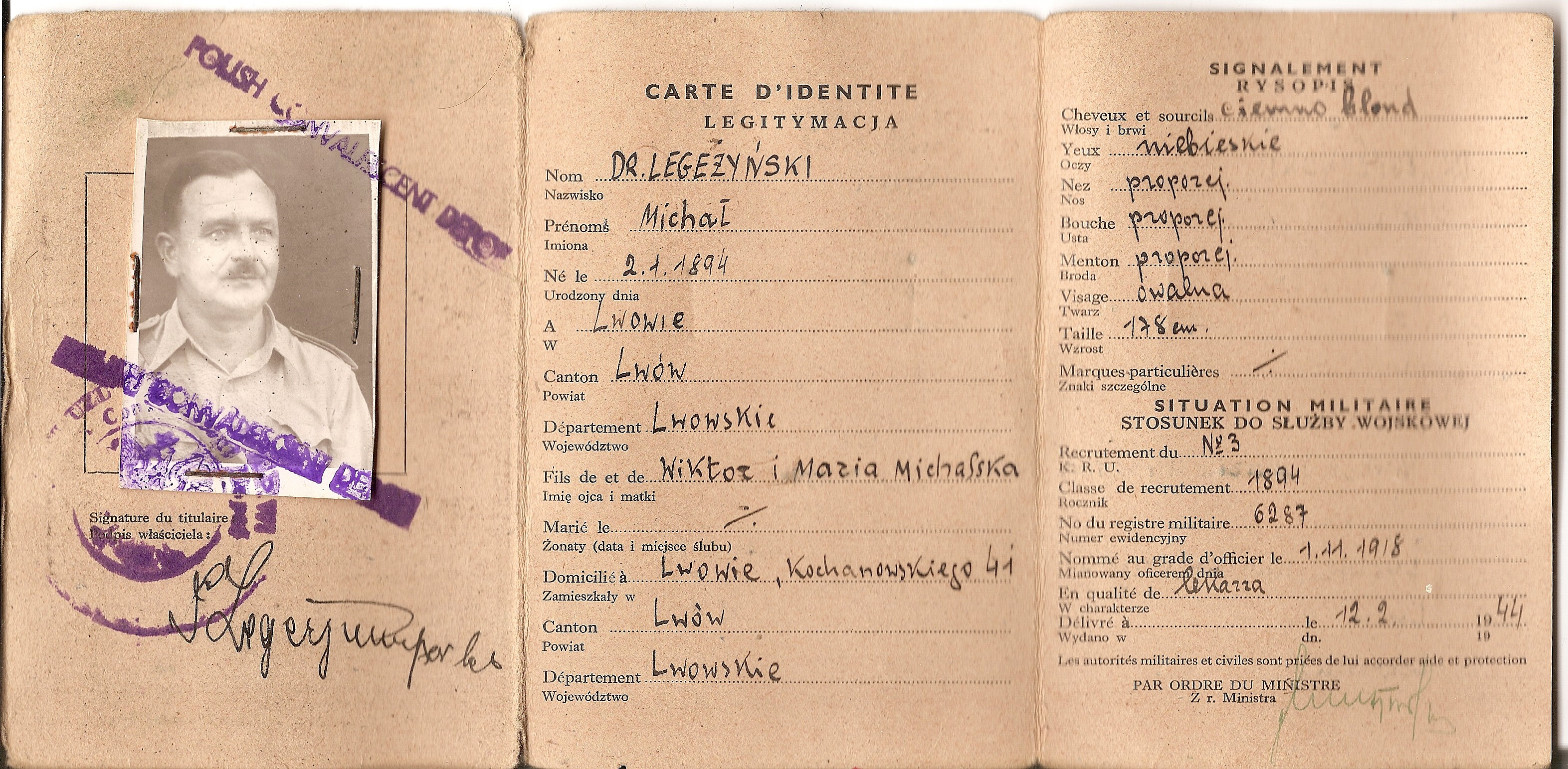 porucznik doktor Michał Legeżyński przed 1939 r pracował we Lwowie na różnych stanowiskach w służbie zdrowia. Po wybuchu wojny przedostał się poprzez Rumunię do Palestyny, i wstąpił do tworzonej Armii gen. Andersa. W wojsku kontynuował pracę jako lekarz w szpitalach w Palestynie i we Włoszech. Po zakończeniu wojny przeniesiony został do UK, w 1946 r został zdemobilizowany i powrócił do kraju. Szczególną pamiątką z tego okresu jest znakomicie zachowana waliza podróżna, zawierająca komplet ekwipunku przysługujący oficerowi Armii Polskiej na Zachodzie. W skład ekwipunku wchodziły: