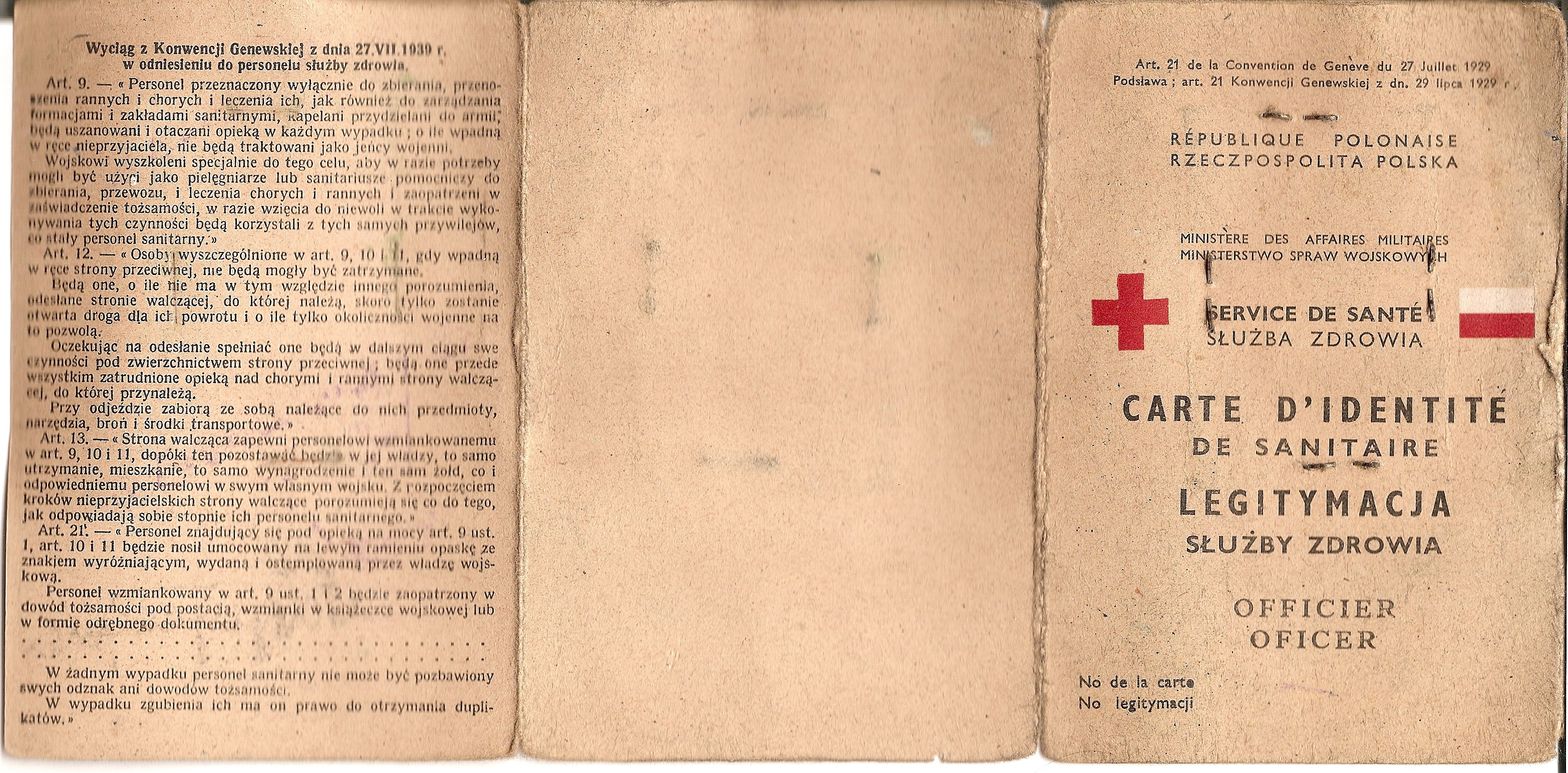- Michał Legeżyński 1944 legitymacja oficera służby zdrowia Armia Andersa