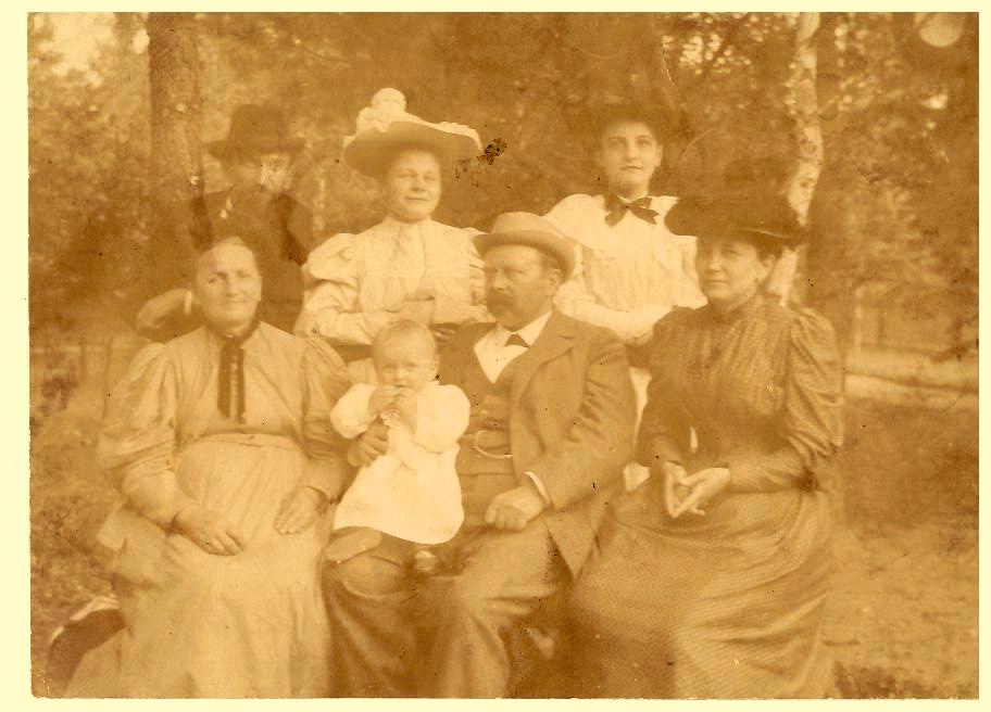 - Legeżyńscy przed domem przy ul. św Michała: siedzą od lewej Kuba Lewicki, Maria córka, dr Wiktor ojciec, Michał Legeżyńscy i 2 drobnych dzieci, stoją od lewej Wiktor syn, Maria z Michalskich Legeżyńska i 3 synów