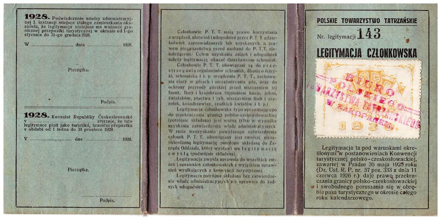 - Polskie Towarzystwo Tatrzańskie legitymacja 1926 r str 1 Michał Legeżyński