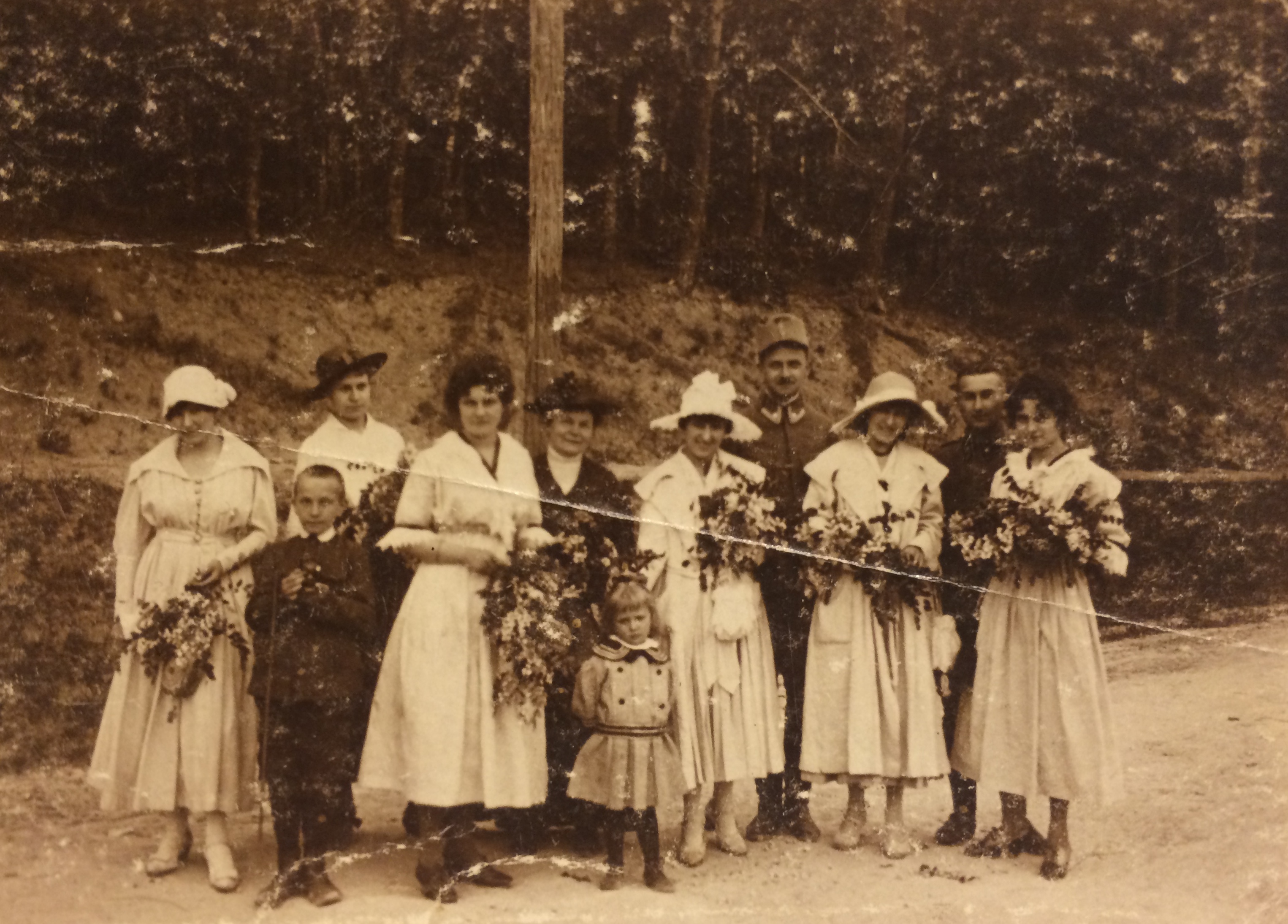 - Michał stoi w czapce, Maria, Maria z Michalskich, w środku, Legeżyńscy i in 1916 r