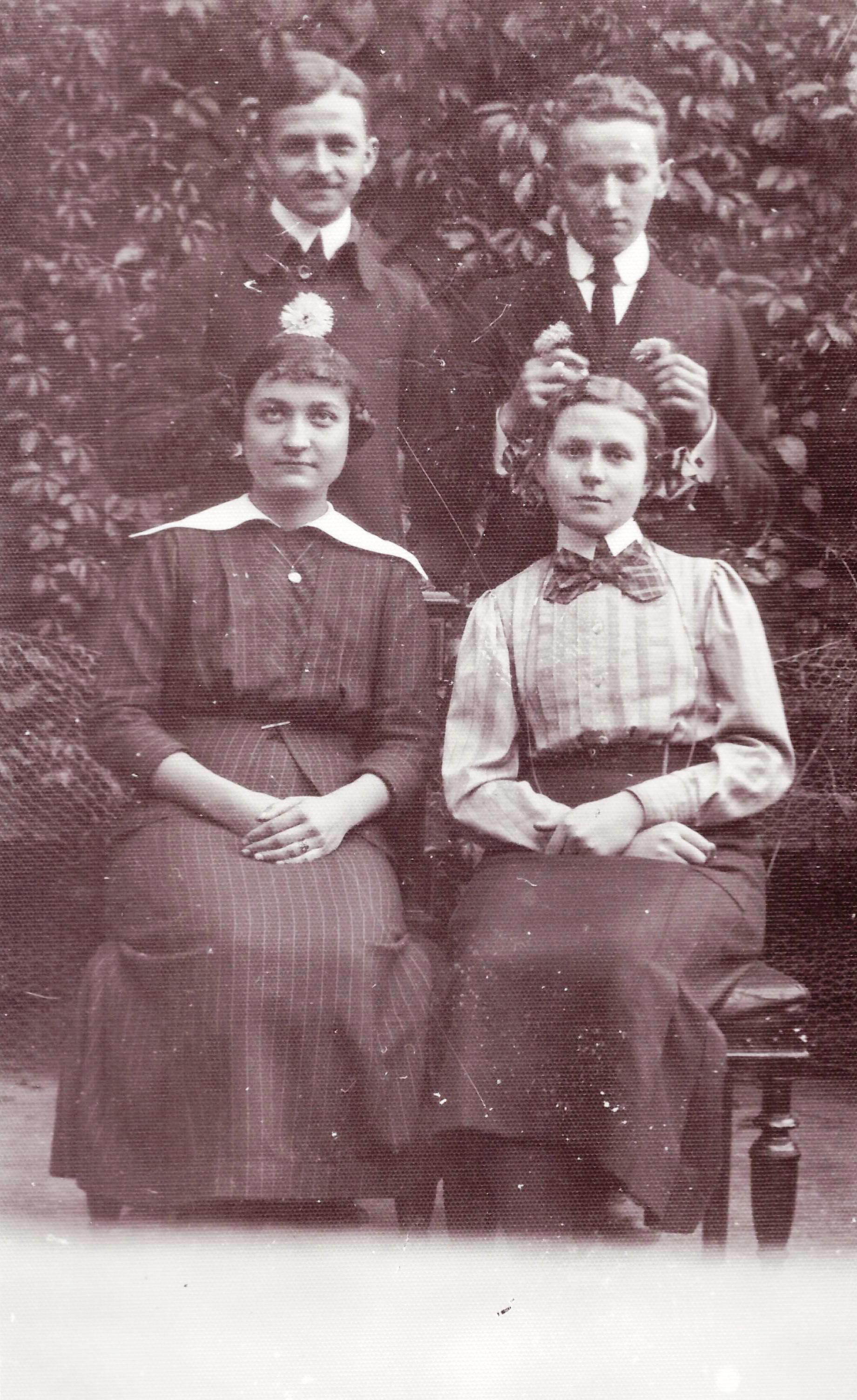 - Legeżyński Michał, Władek Tobiczyk, Jadzia Zadrzycka, Maria Legeżyńska od lewej ok. 1914 r