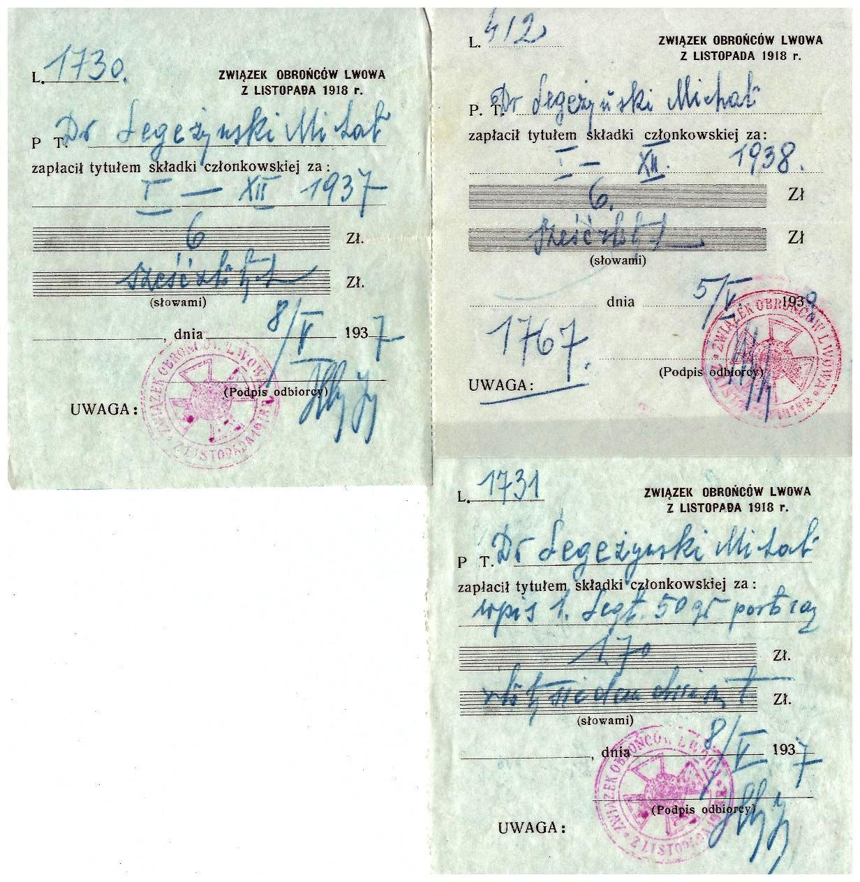- Związek Obrońców Lwowa legitymacja opłacene składki członkowskie Michał Legeżyński