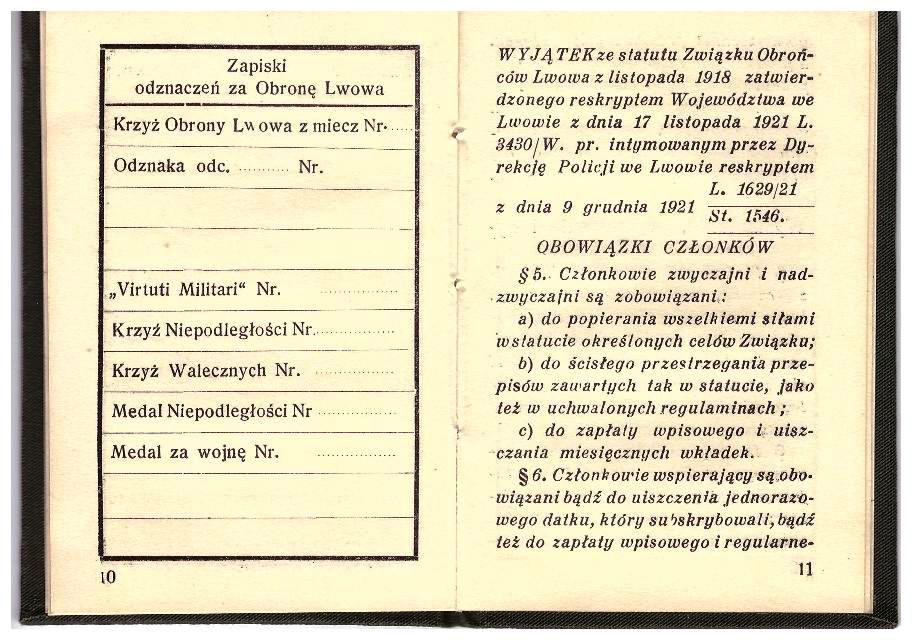 - Związek Obrońców Lwowa legitymacja str 10-11 Michał Legeżyński