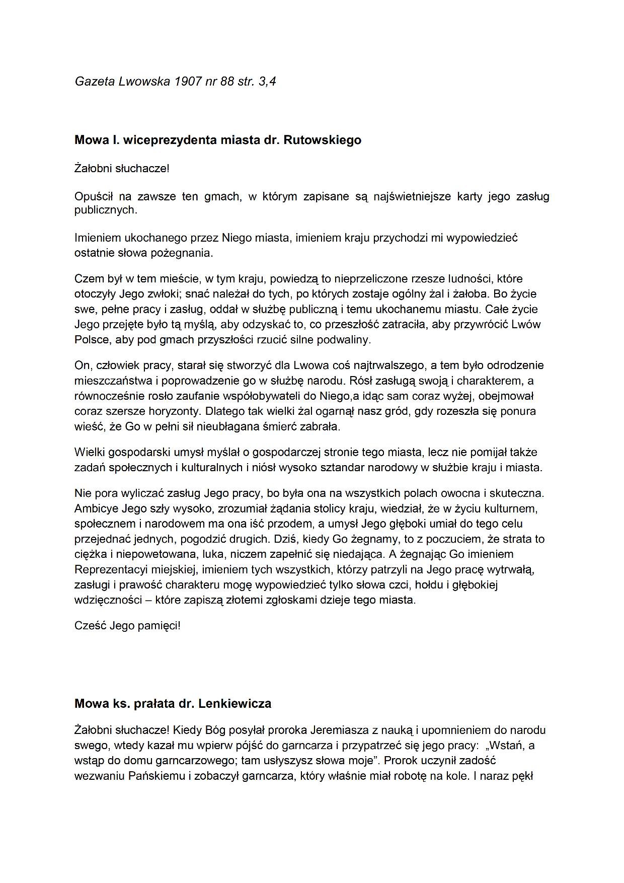 - pogrzeb Michała Michalskiego 1907 r, mowa dr Rutowskiego i prałata Lenkiewicza 2