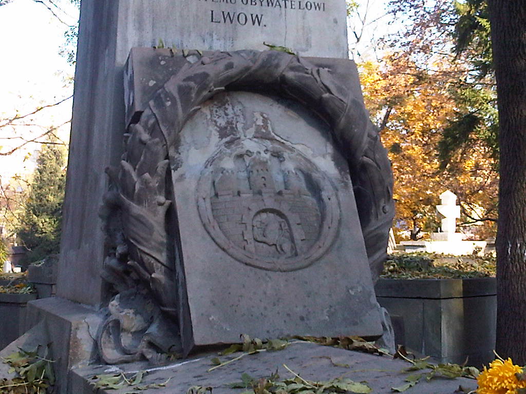 - Lwów cmentarz Łyczakowski maj 2005 grobowiec rodziny Michała Michalskiego i Wiktora Legeżyńskiego detal