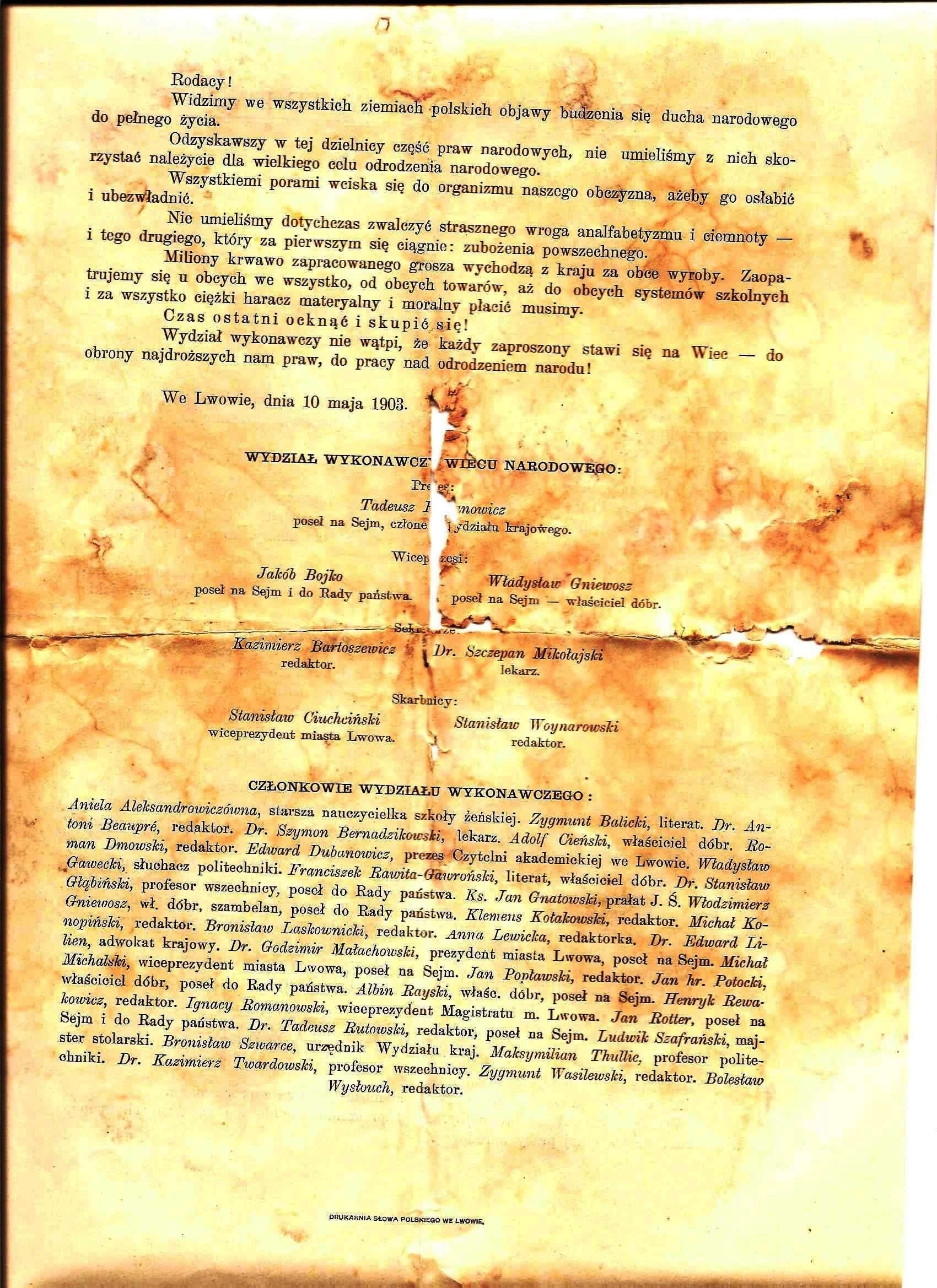 pierwszy wiec narodowy Lwów 1903 r