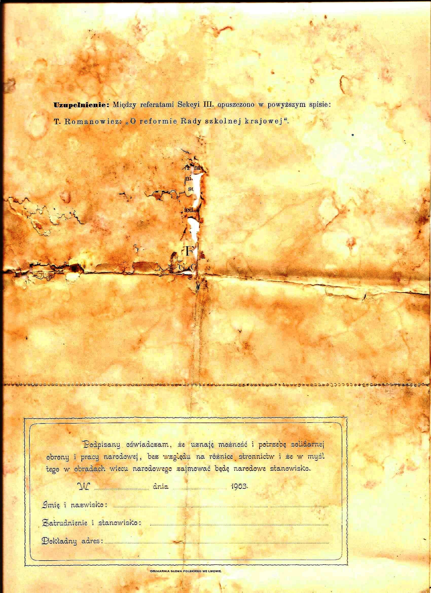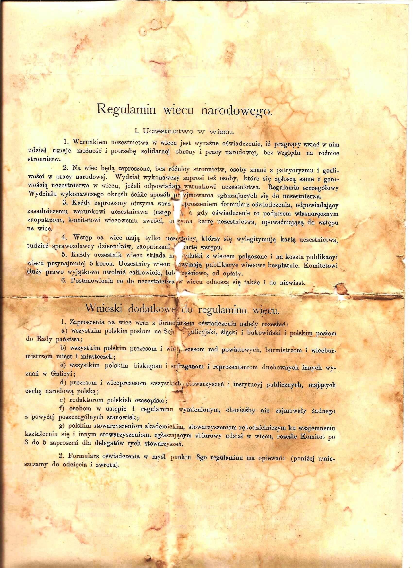 Pewne zdziwienie budzi końcowa uwaga w warunkach uczestnictwa: „postanowienia co do uczestnictwa w wiecu odnoszą się także i do niewiast”. O co im chodziło?, czy kobiety miały zwyczaj wchodzić za darmo ?
