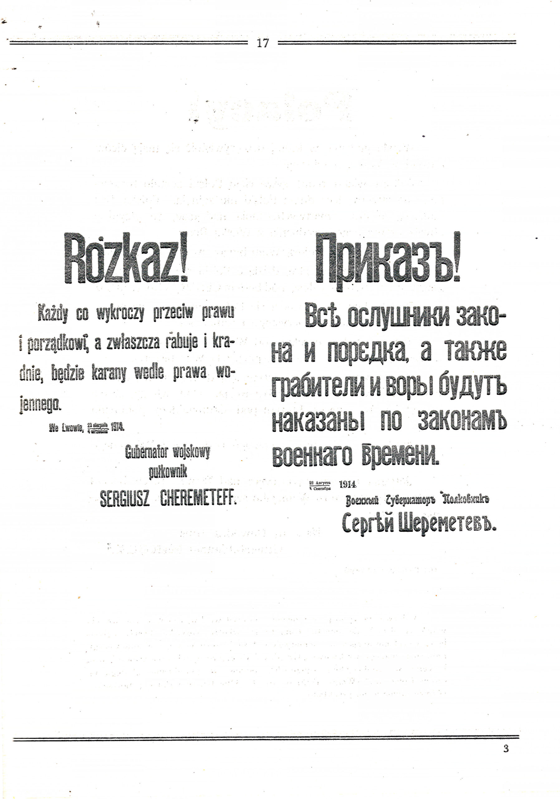- rosyjska okupacja Lwowa 1914-15 rozporządzenia 17