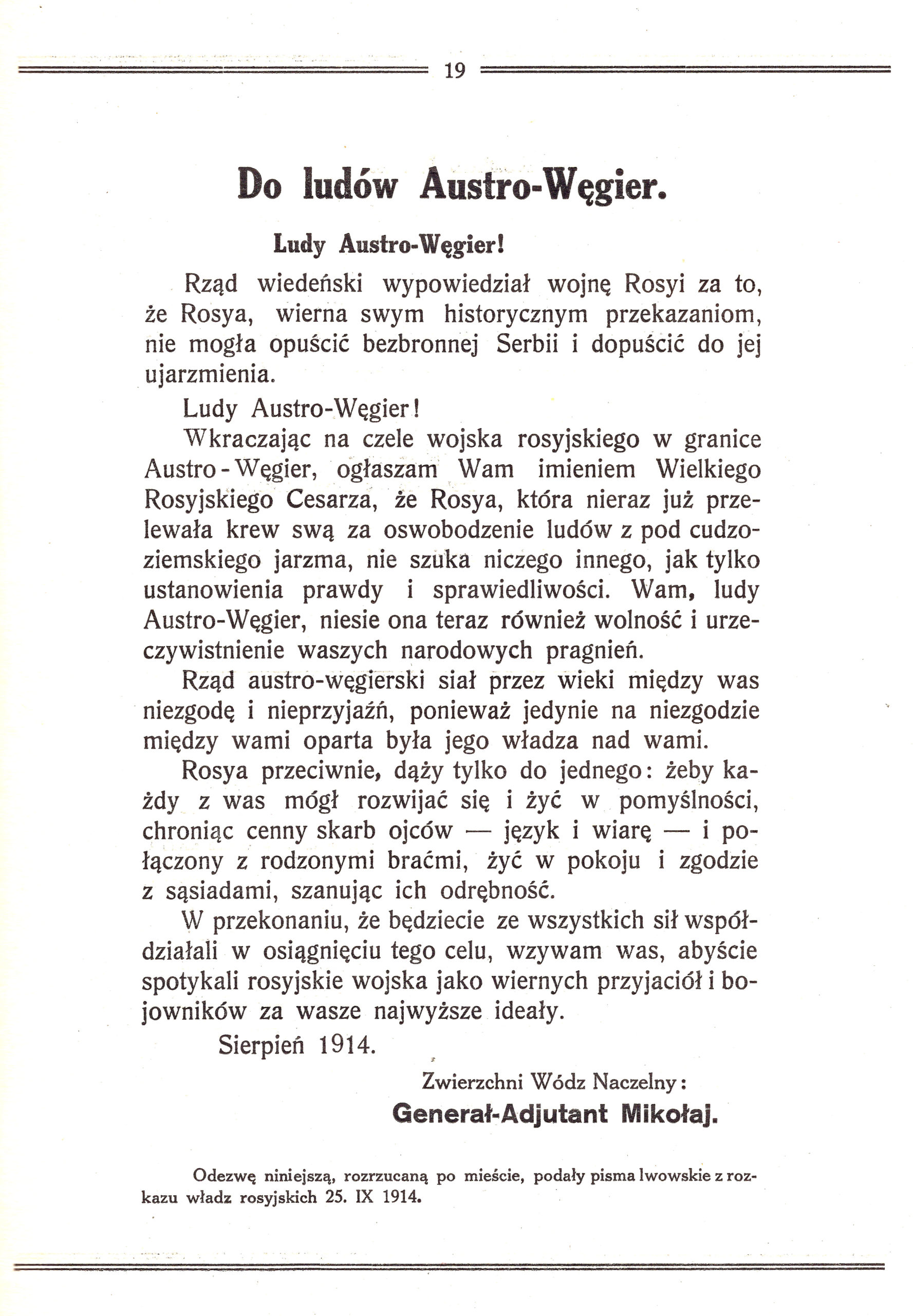 - rosyjska okupacja Lwowa 1914-15 rozporządzenia 19