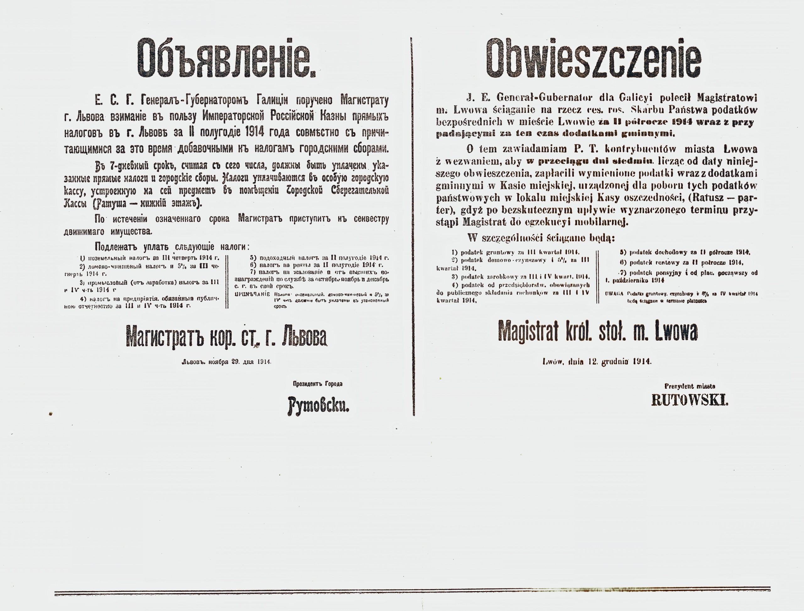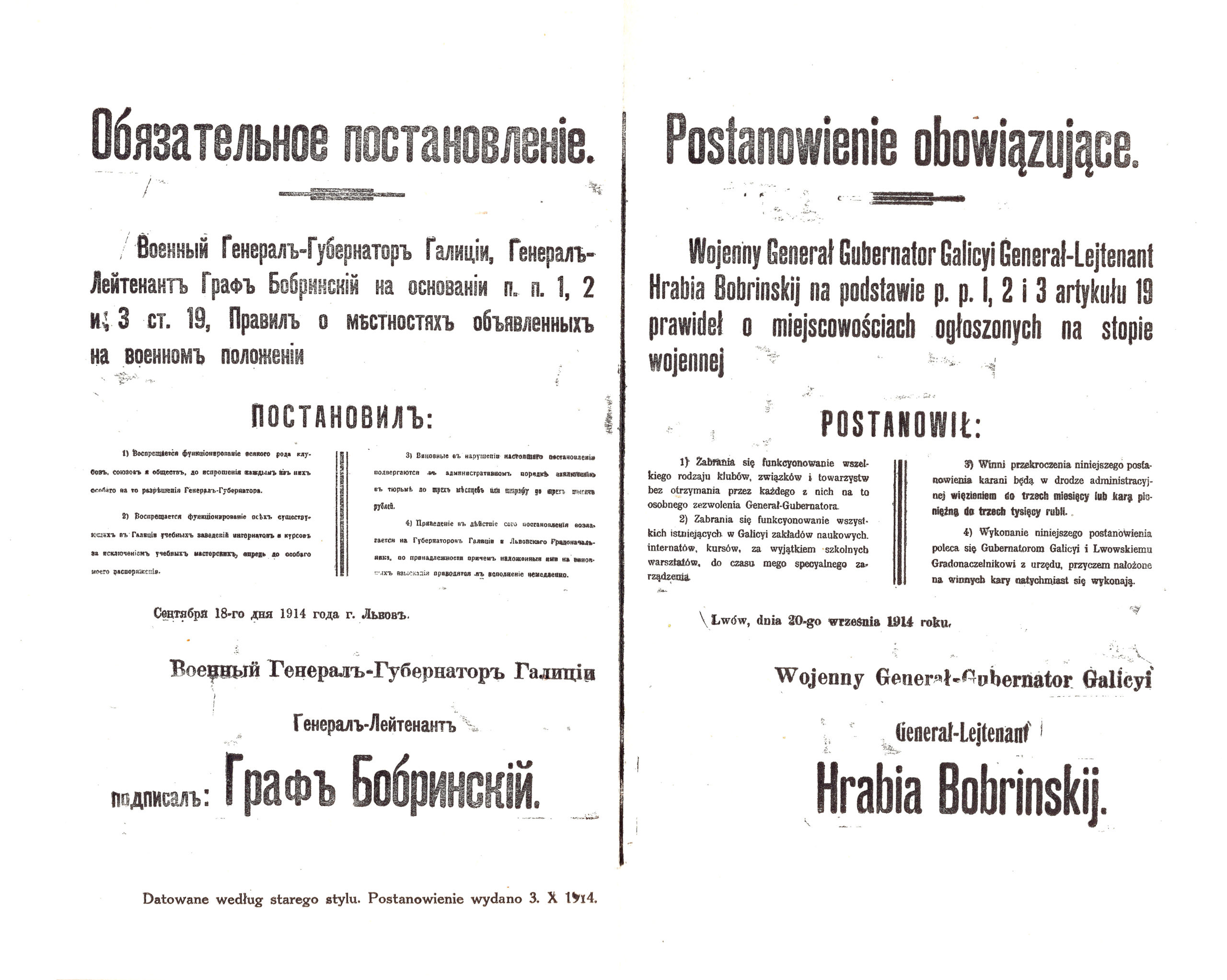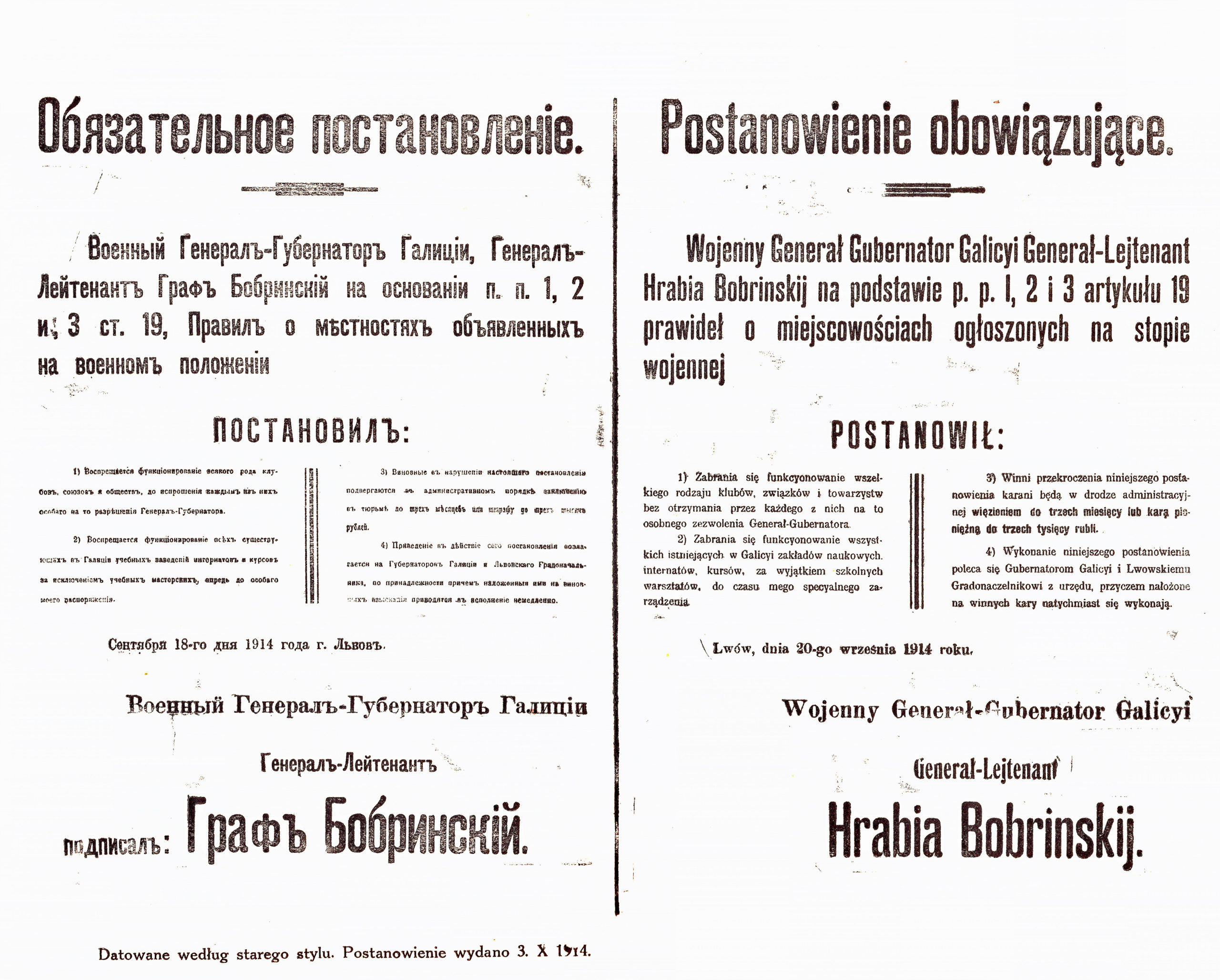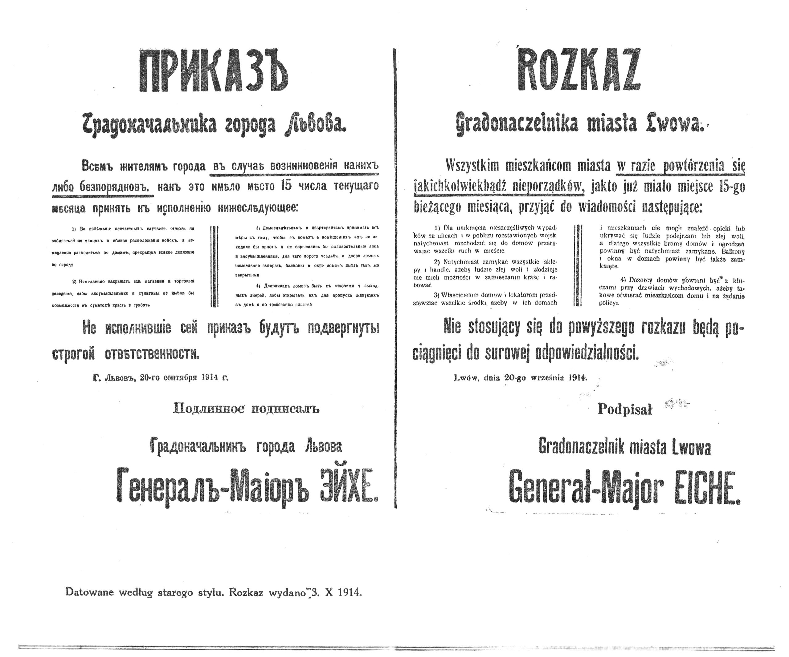 - rosyjska okupacja Lwowa 1914-15 rozporządzenia 1