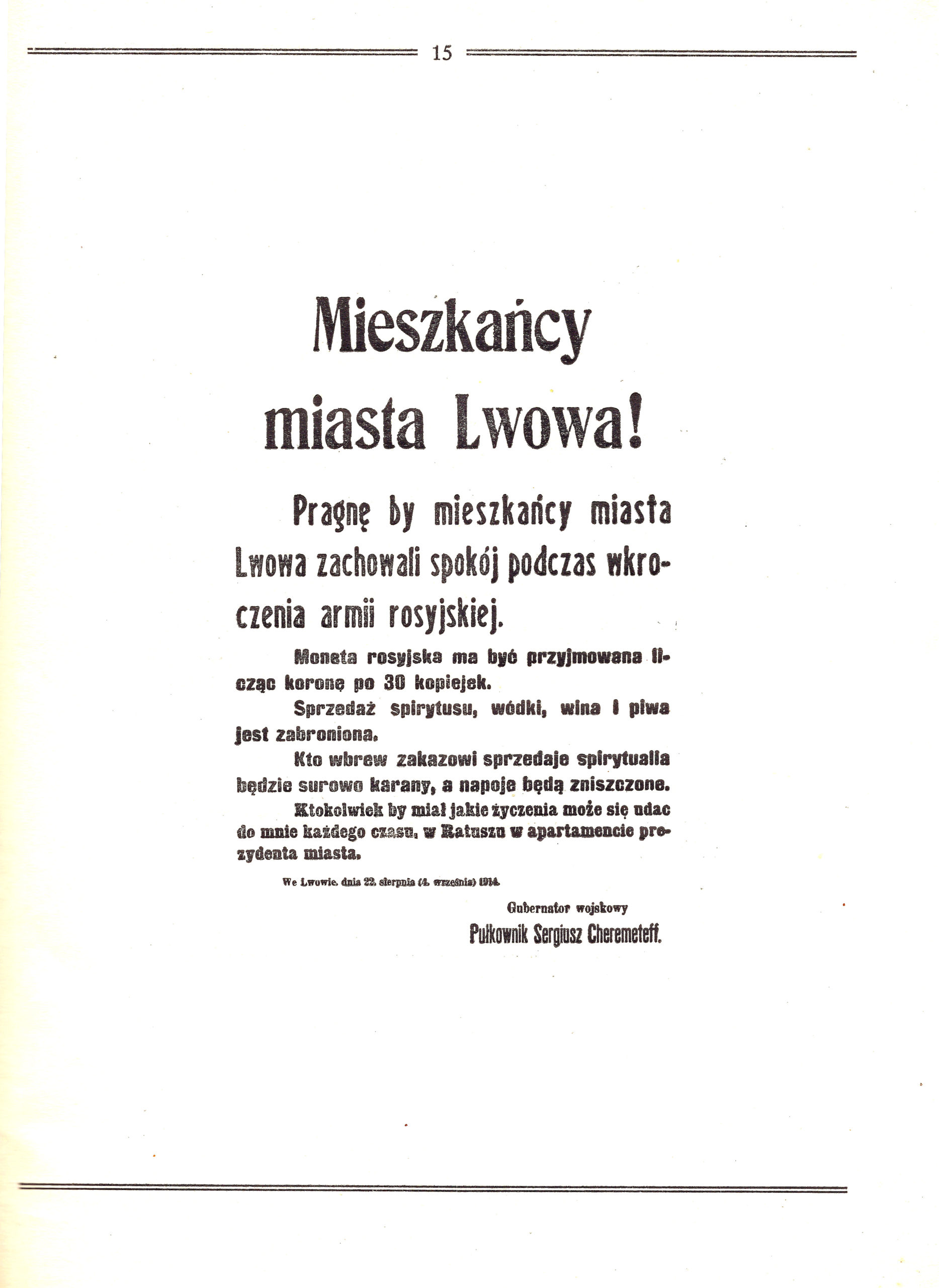 - rosyjska okupacja Lwowa 1914-15 rozporządzenia 15