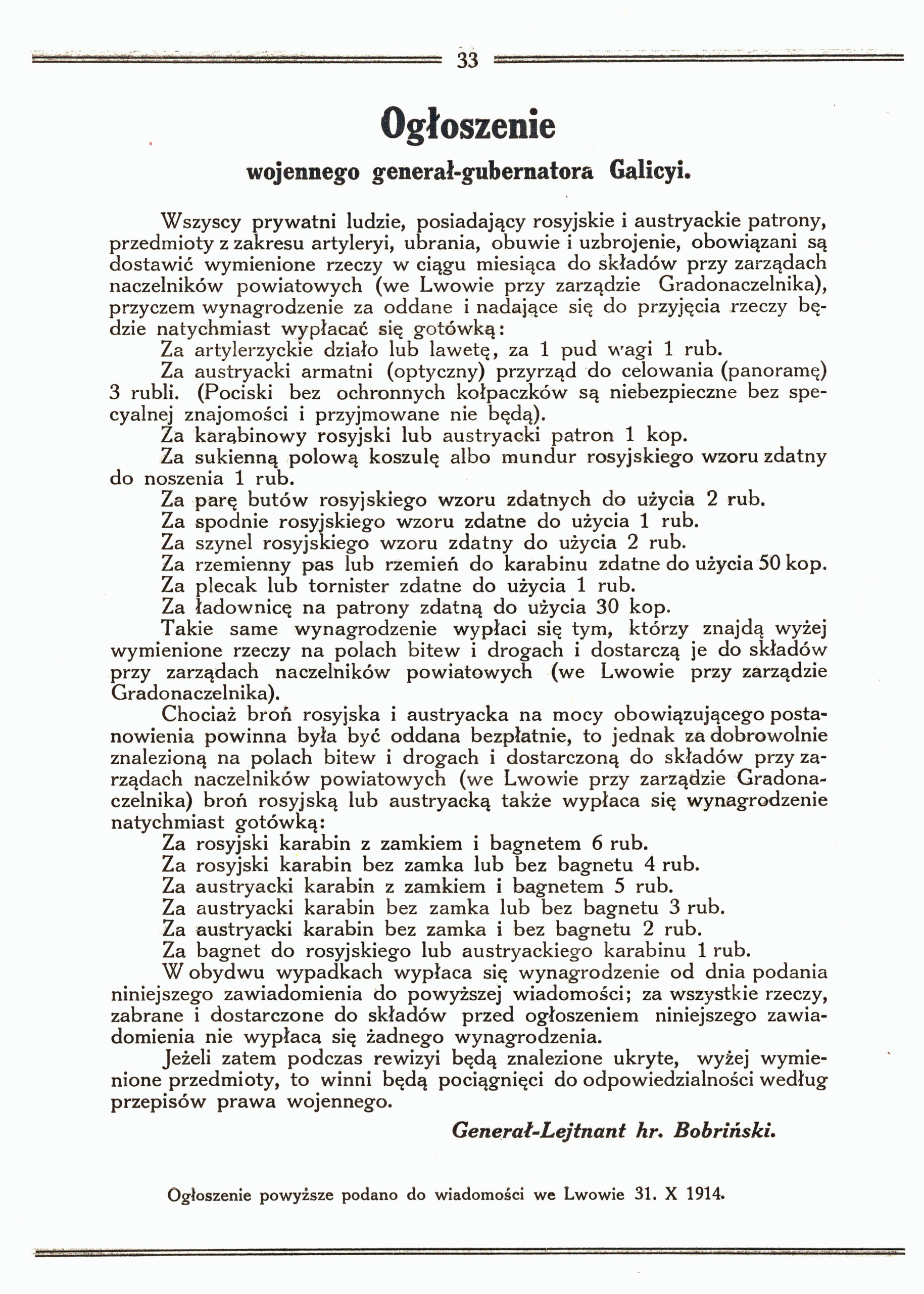 - rosyjska okupacja Lwowa 1914-15 rozporządzenia 33