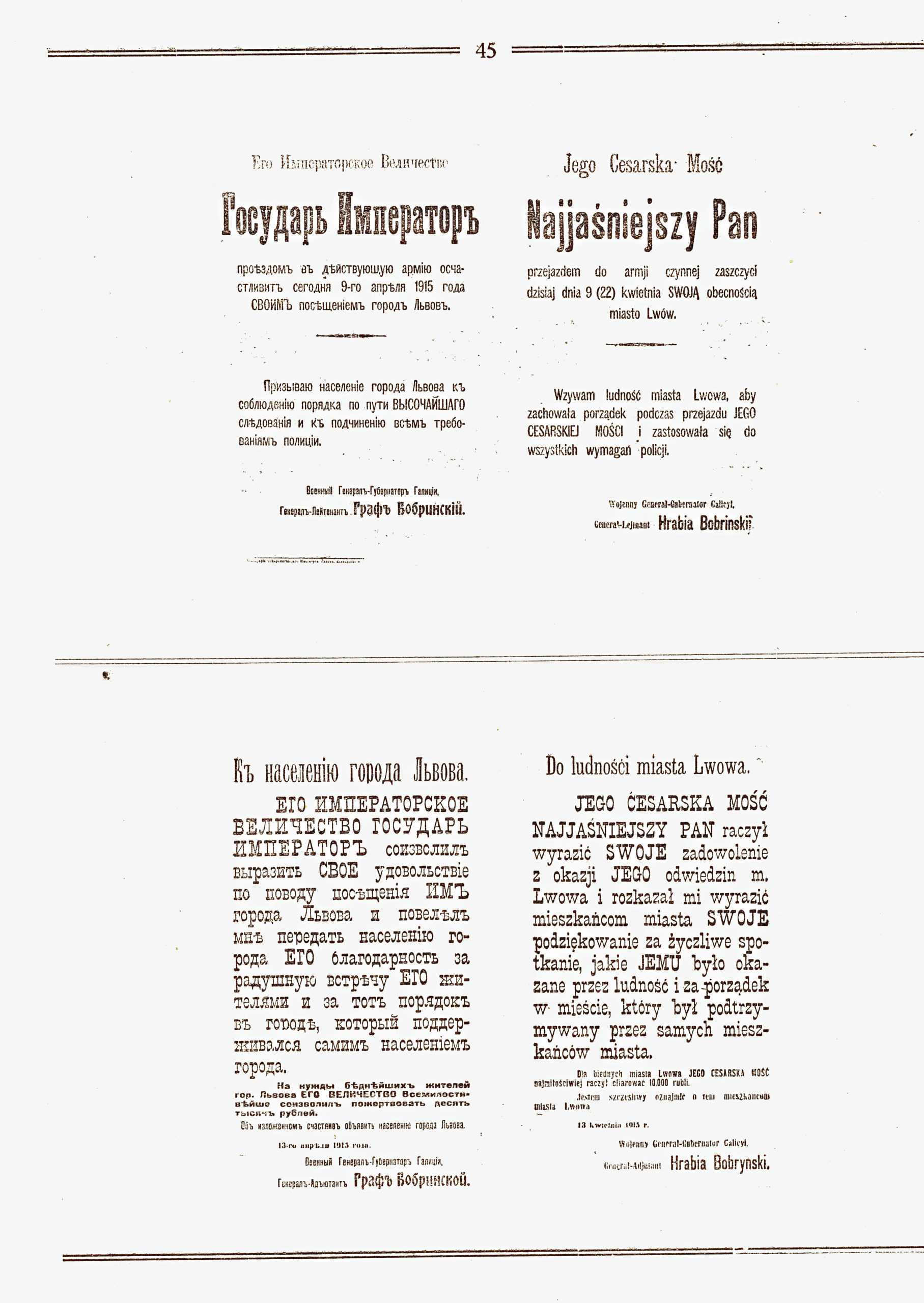 - rosyjska okupacja Lwowa 1914-15 rozporządzenia 45