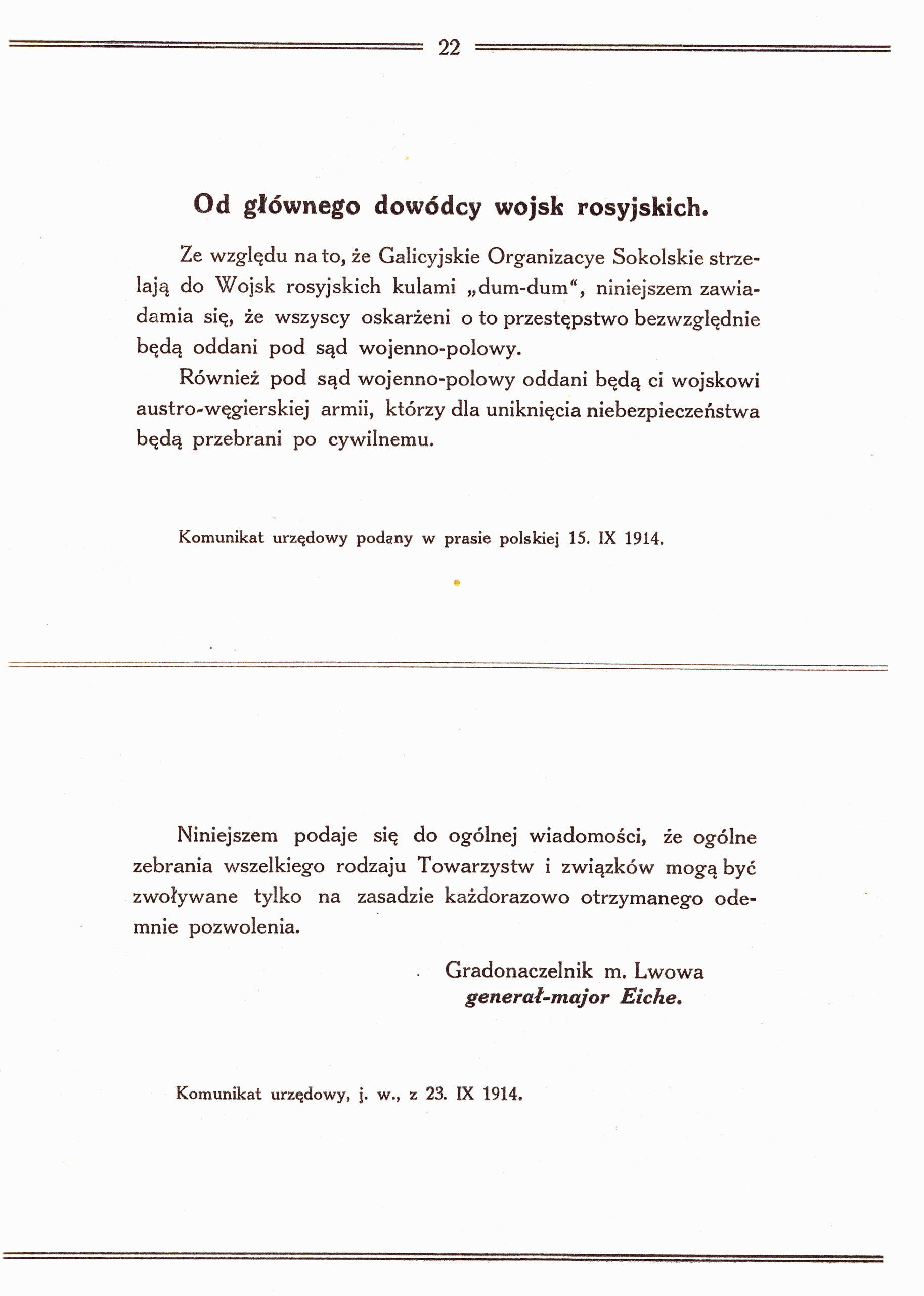 - rosyjska okupacja Lwowa 1914-15 rozporządzenia 22