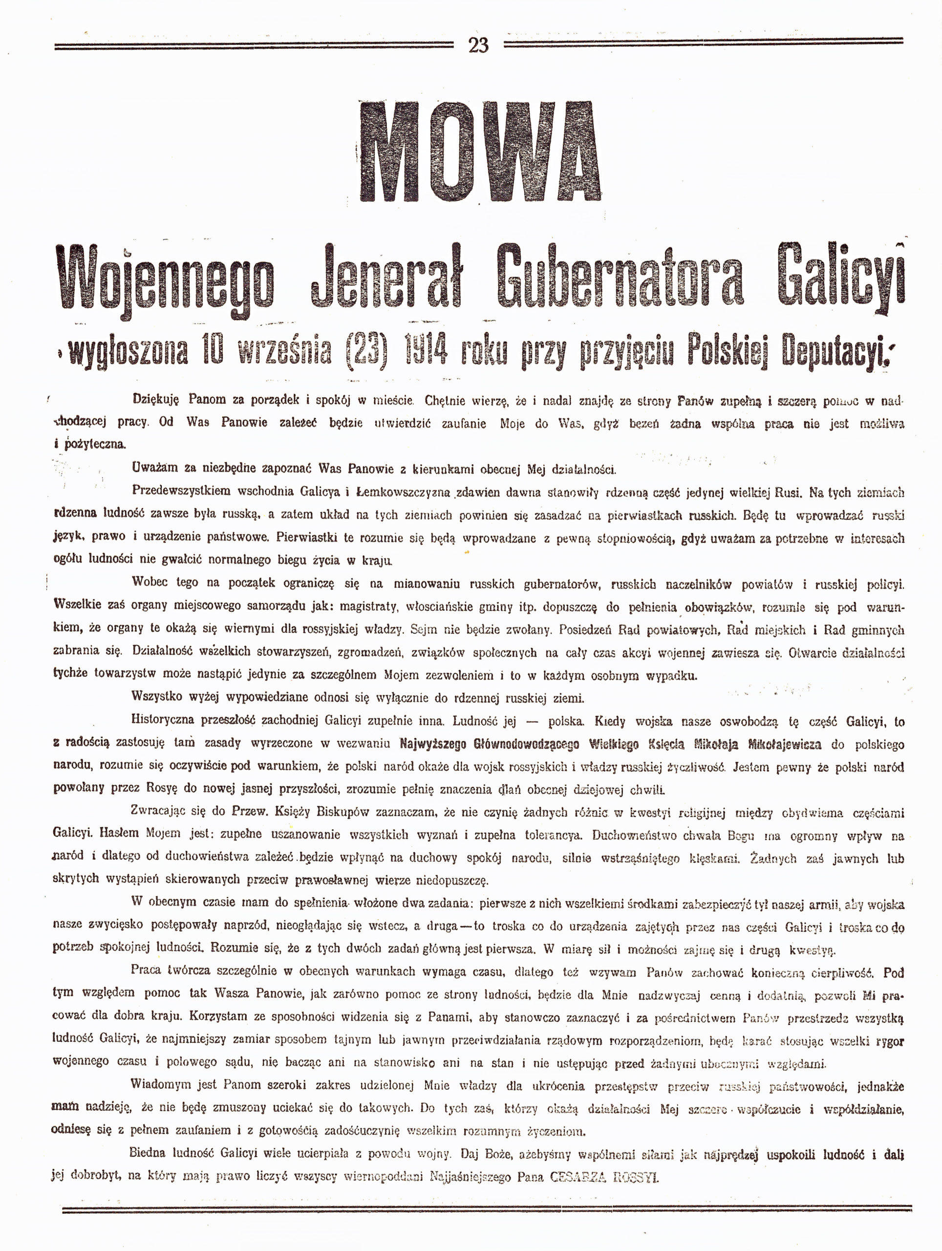 - rosyjska okupacja Lwowa 1914-15 rozporządzenia 23