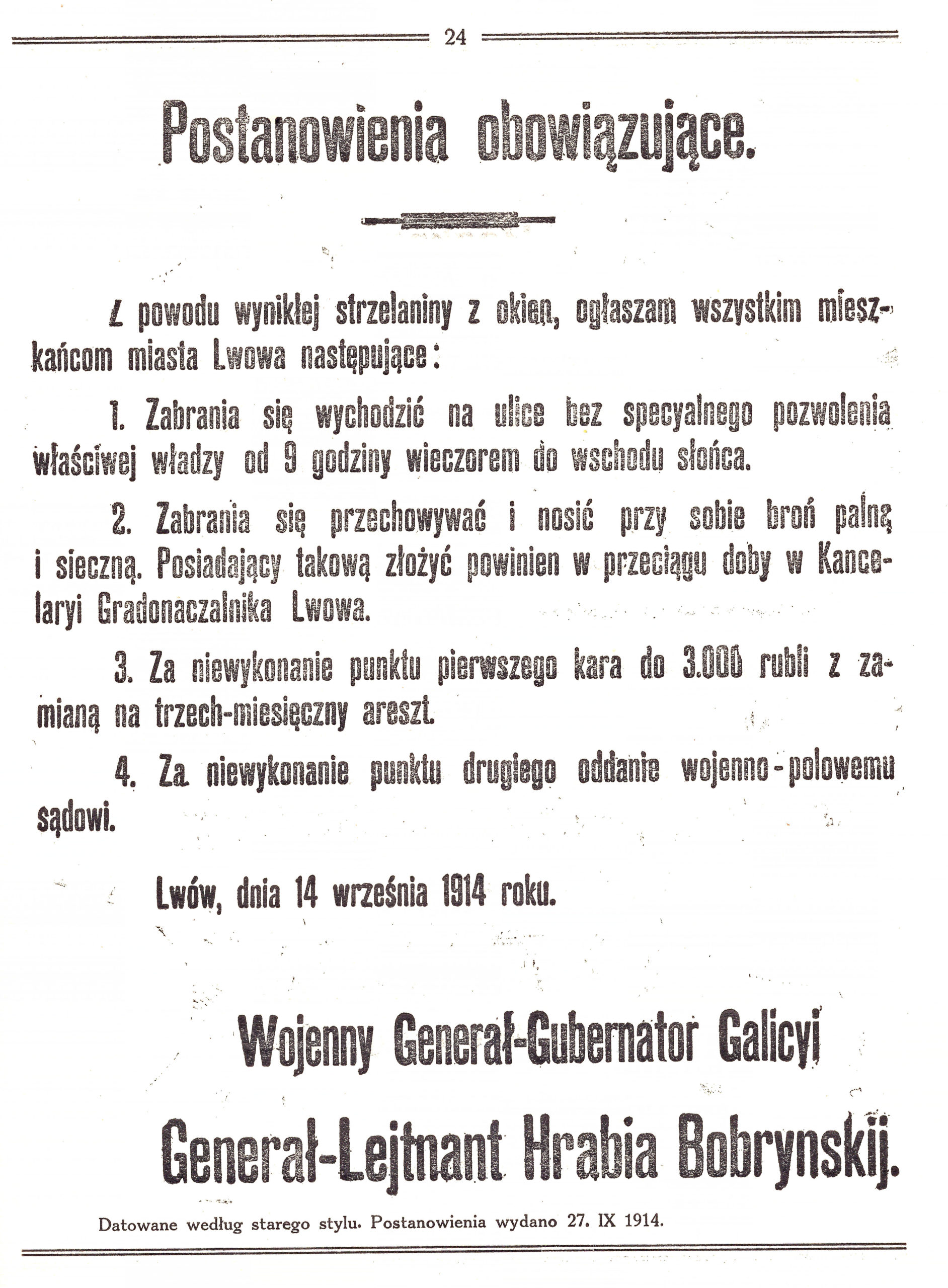 - rosyjska okupacja Lwowa 1914-15 rozporządzenia 24