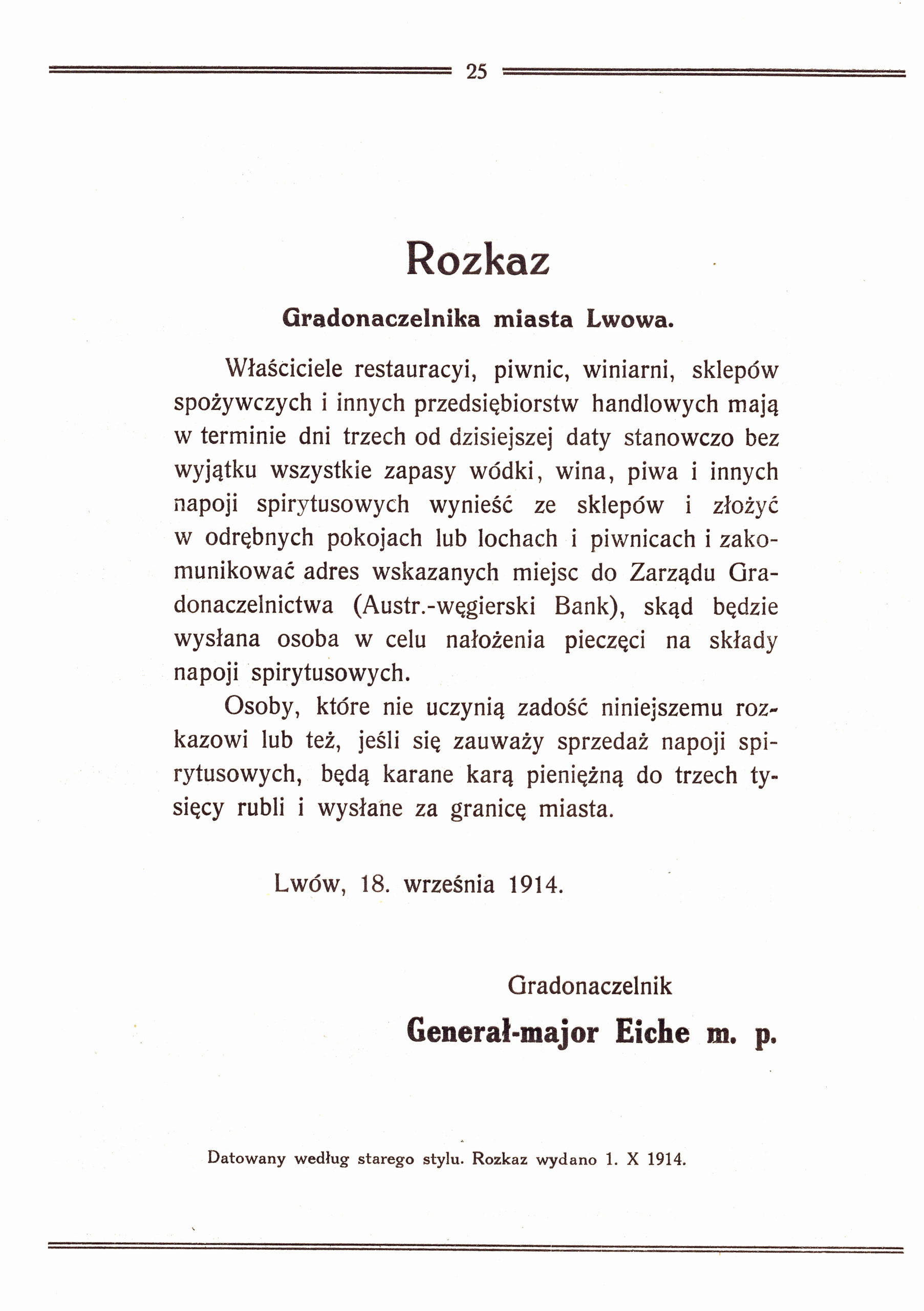 - rosyjska okupacja Lwowa 1914-15 rozporządzenia 25