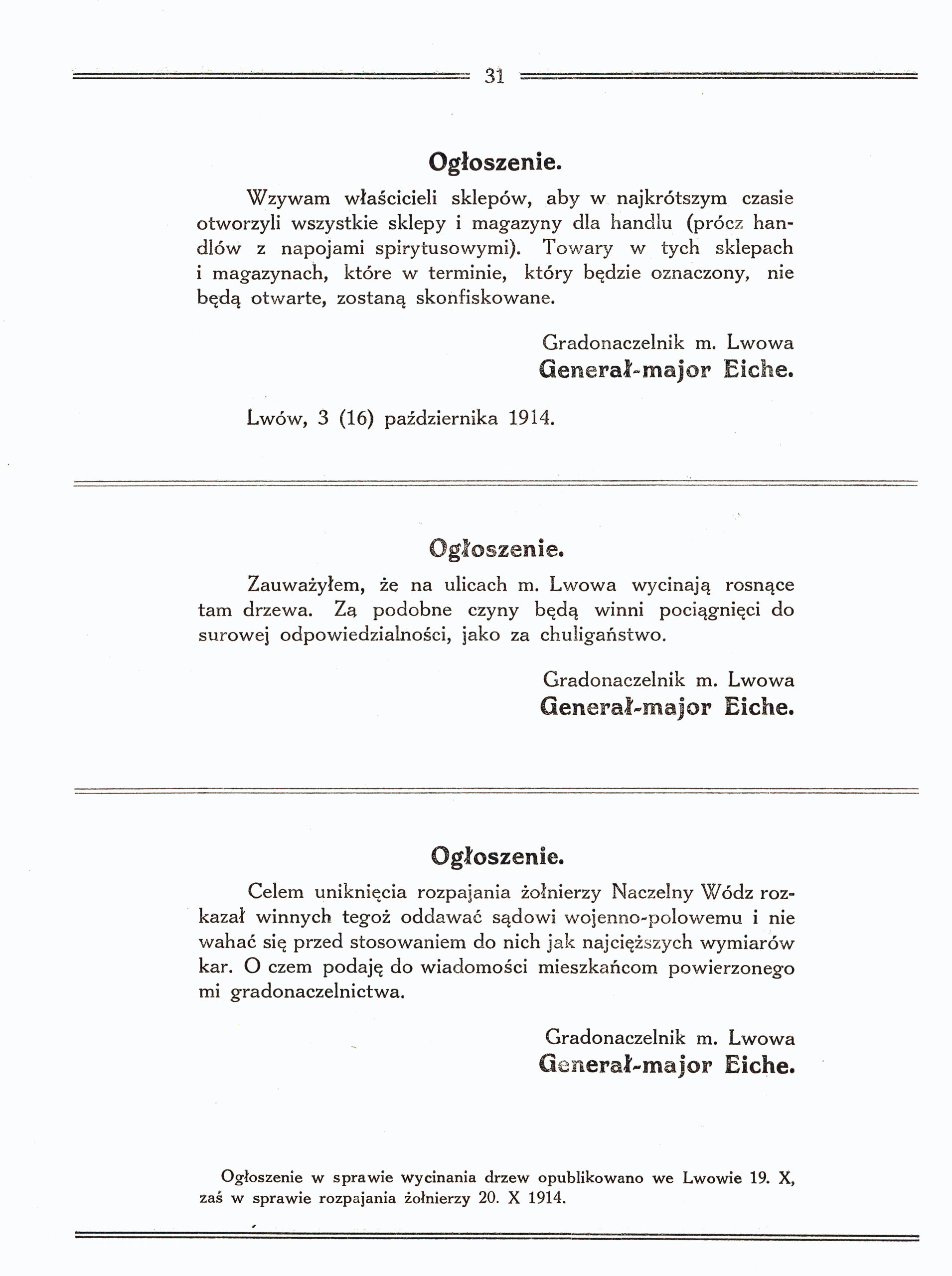 - rosyjska okupacja Lwowa 1914-15 rozporządzenia 31