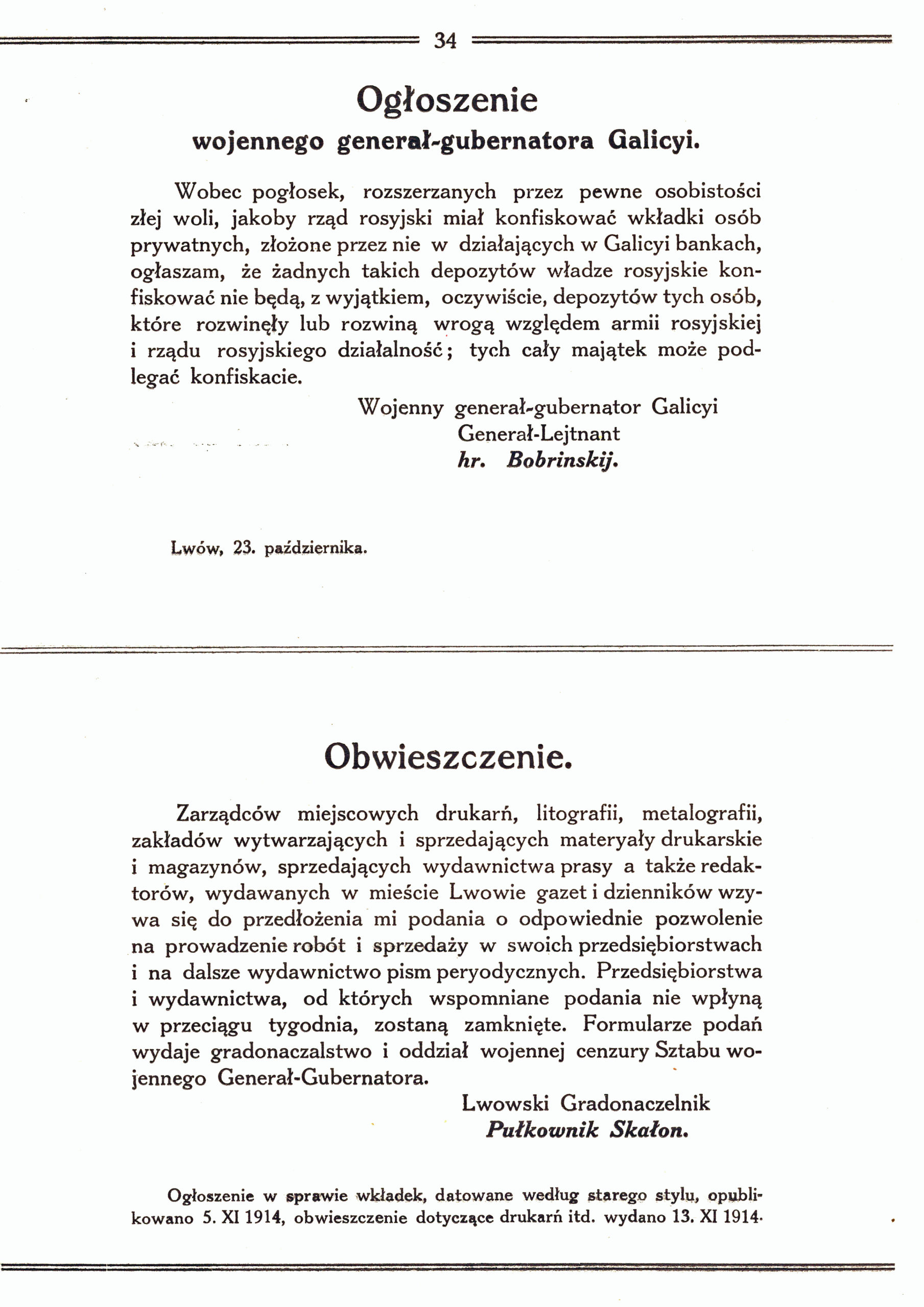 - rosyjska okupacja Lwowa 1914-15 rozporządzenia 34