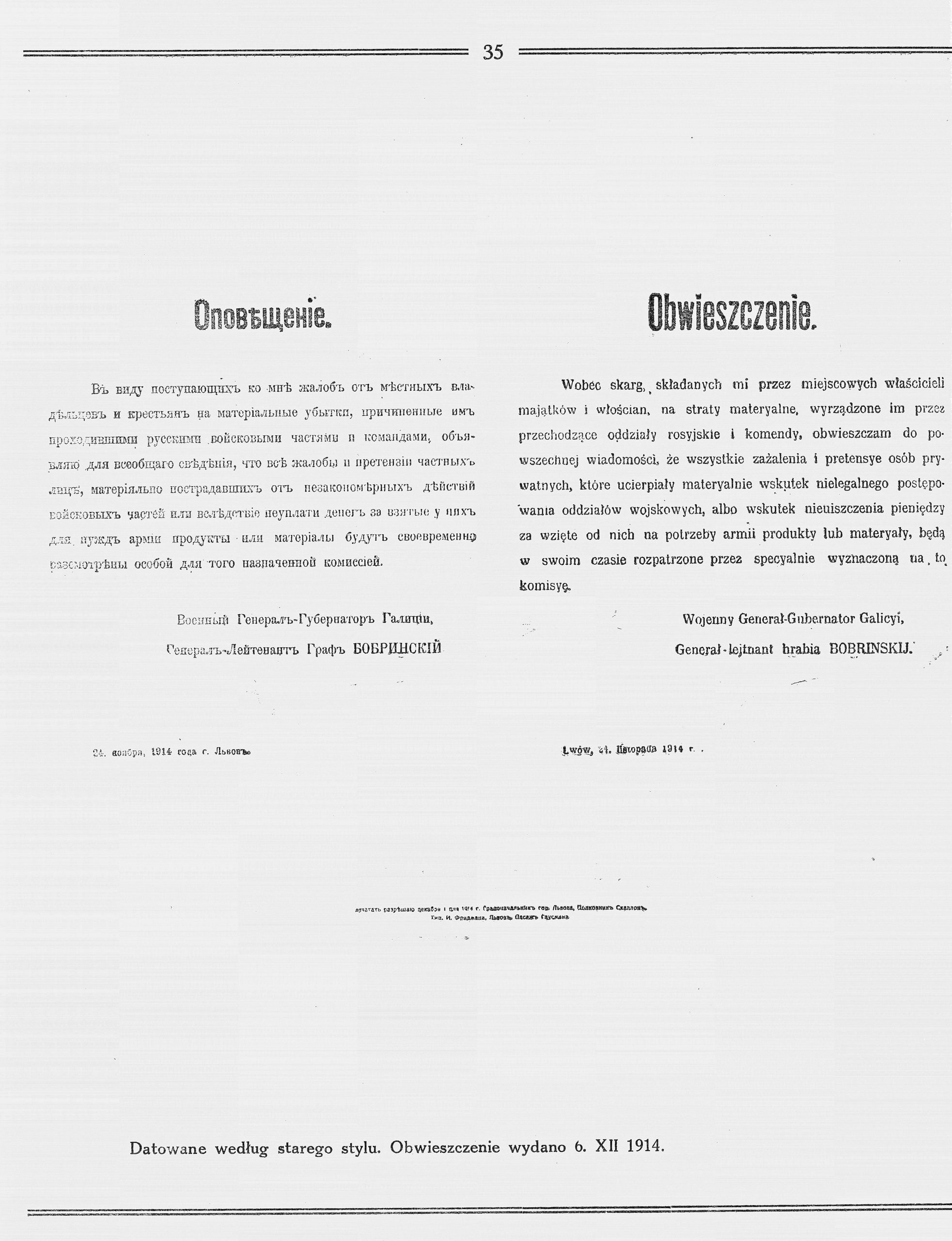 - rosyjska okupacja Lwowa 1914-15 rozporządzenia 35