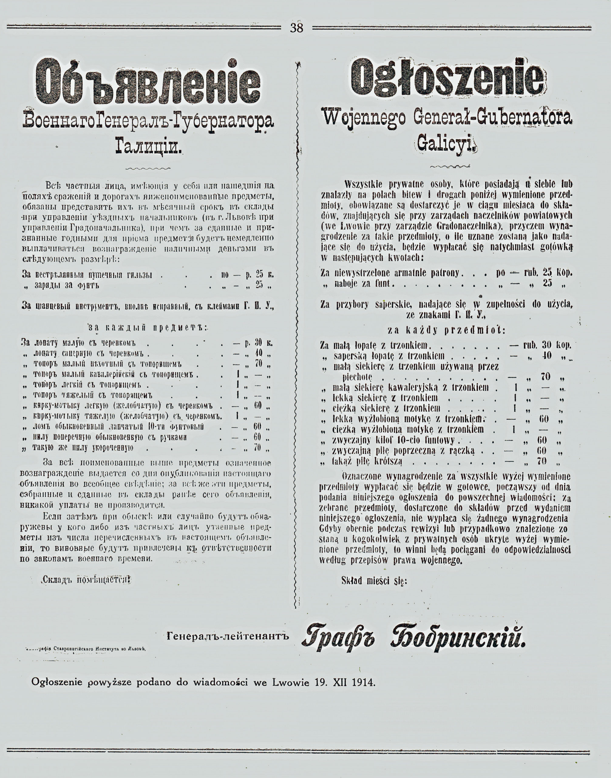 - rosyjska okupacja Lwowa 1914-15 rozporządzenia 38