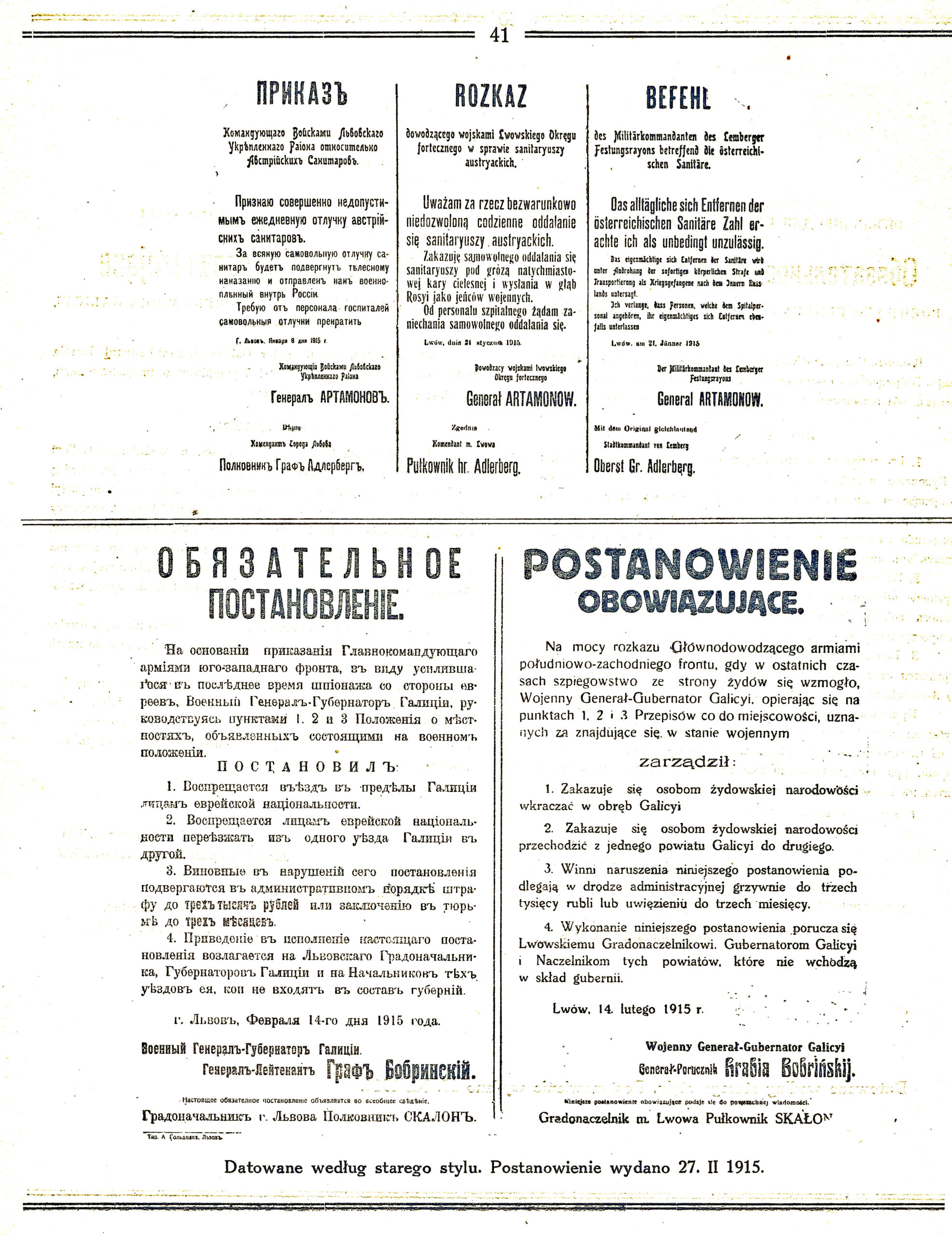 - rosyjska okupacja Lwowa 1914-15 rozporządzenia 41