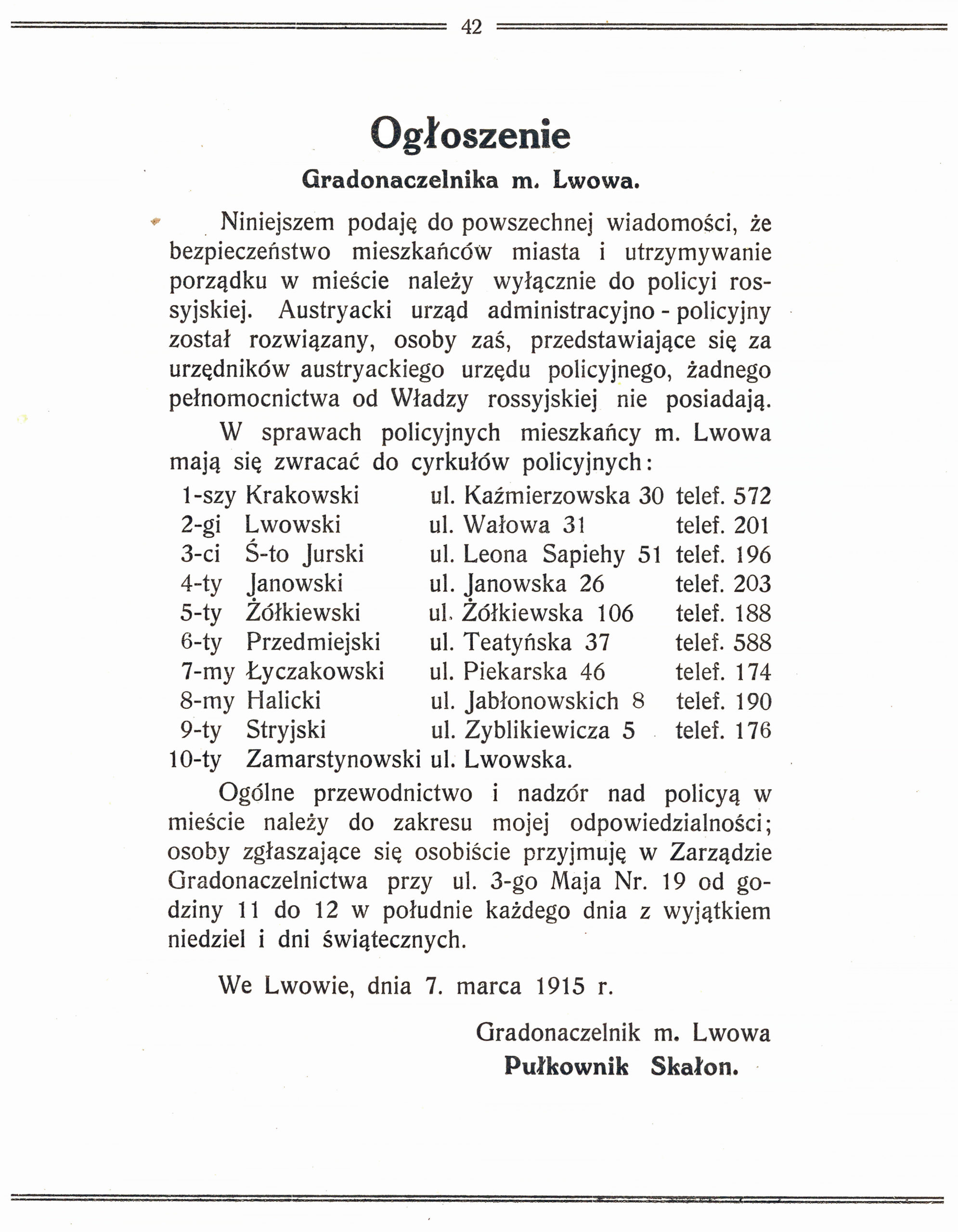 - rosyjska okupacja Lwowa 1914-15 rozporządzenia 42