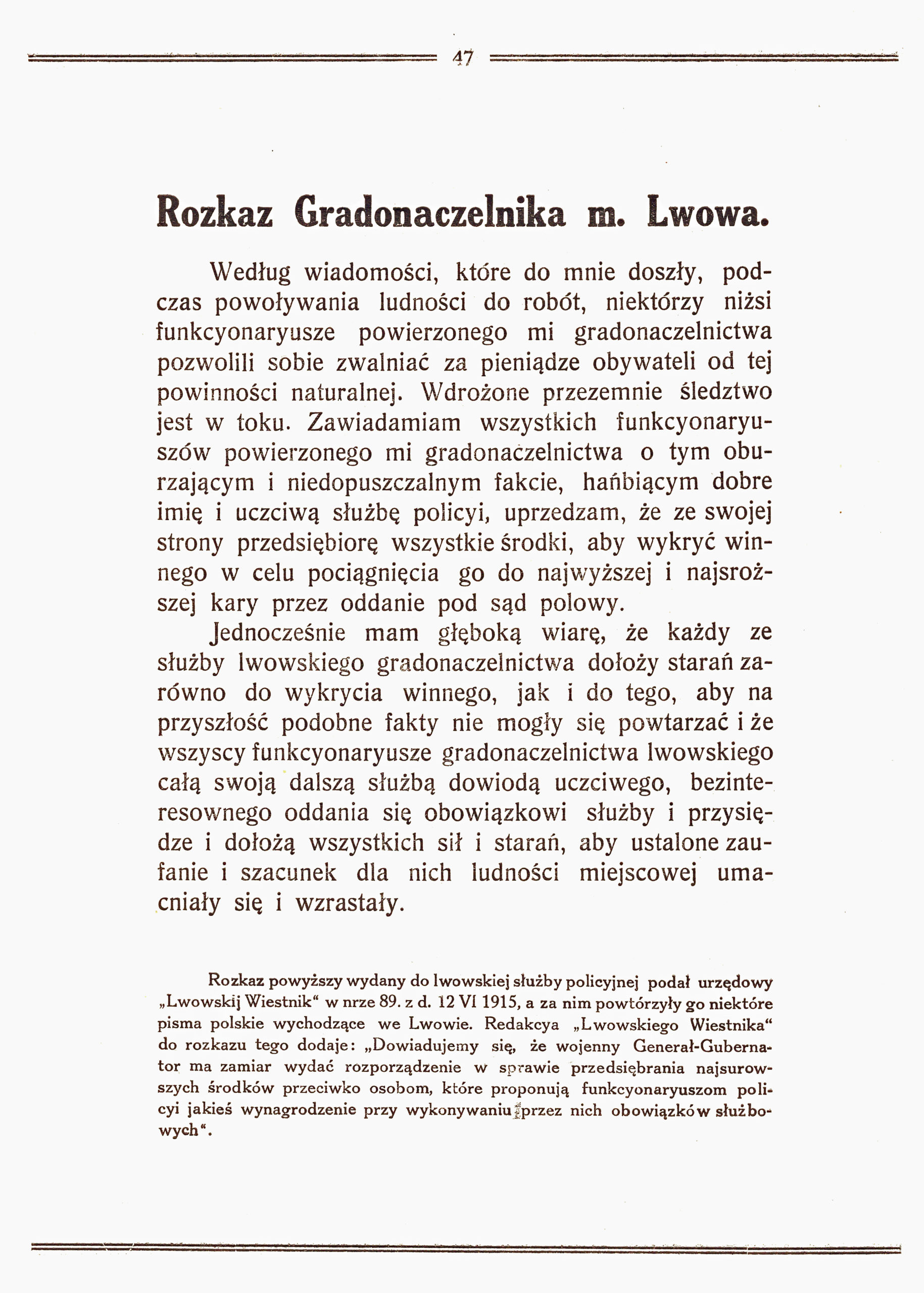 - rosyjska okupacja Lwowa 1914-15 rozporządzenia 47