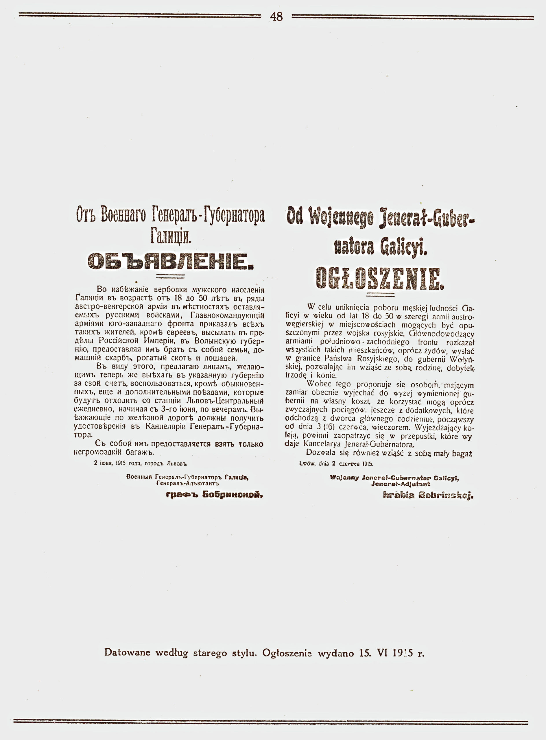 - rosyjska okupacja Lwowa 1914-15 rozporządzenia 48